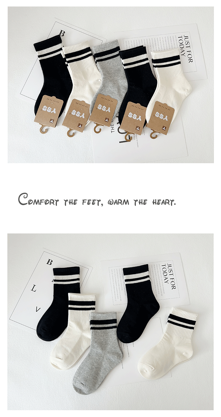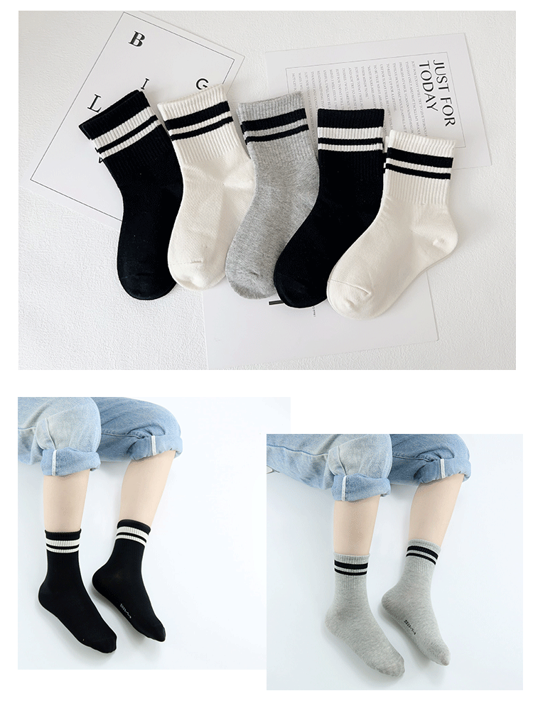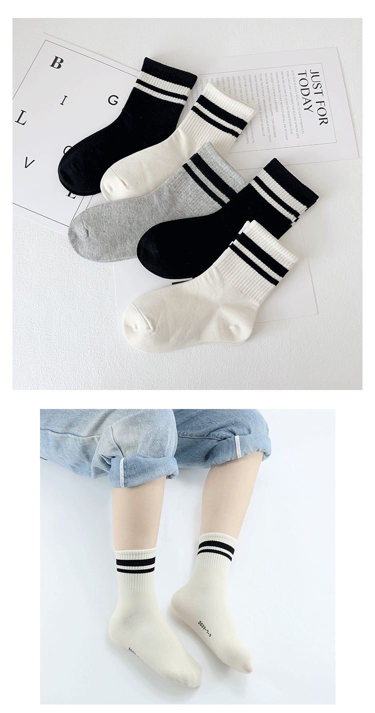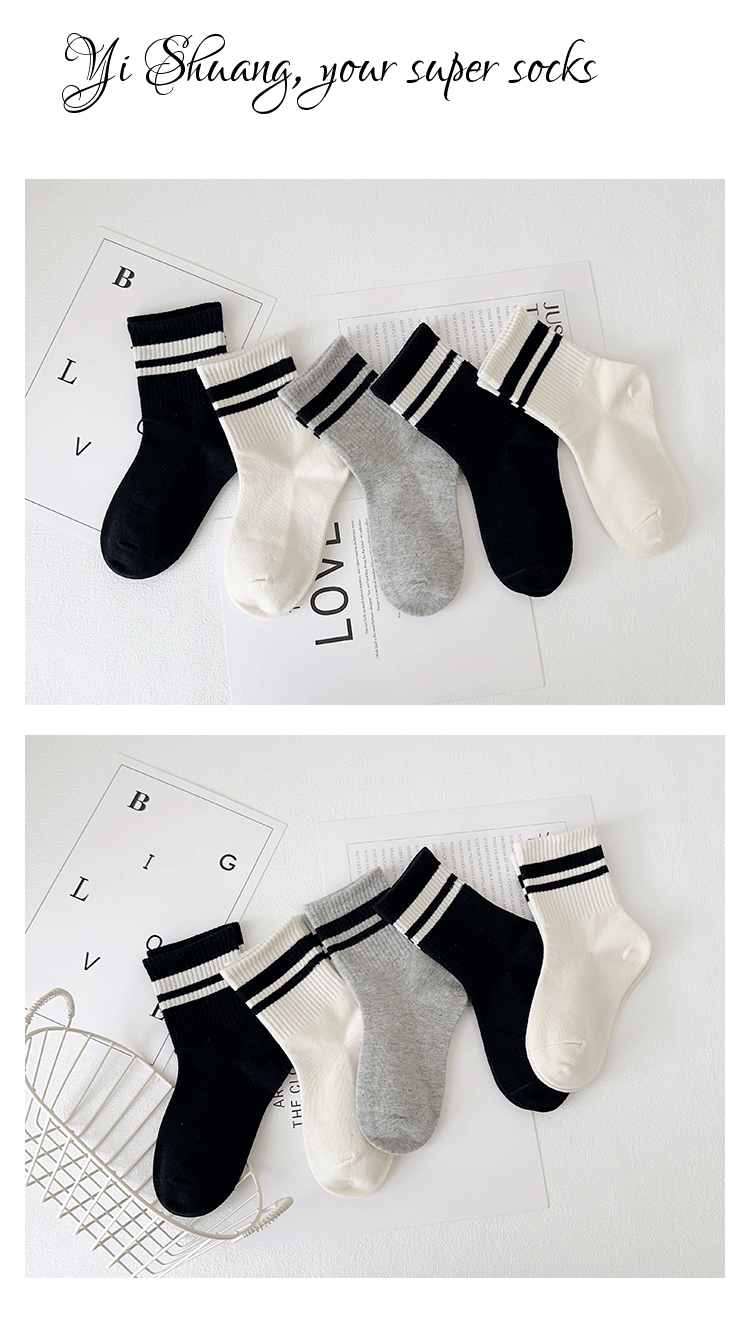 이순이 한 쌍의 어린이 양말 가을과 겨울 새로운 한국 줄무늬 튜브 양말은면 흑백 스포츠 양말 뼈없는 면 양말을 빗어