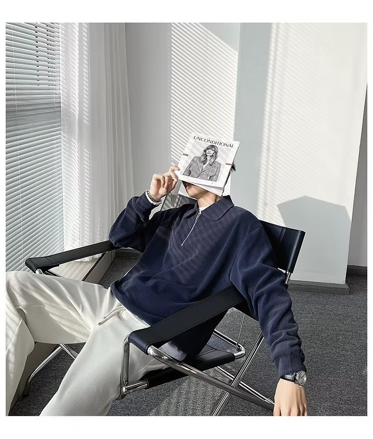 2024 봄과 가을 옷깃 지퍼 긴팔 폴로 셔츠 트렌디 남성 캐주얼 패션, 봄과 가을 더피 최고 잘 생긴 올매치스토어 가기