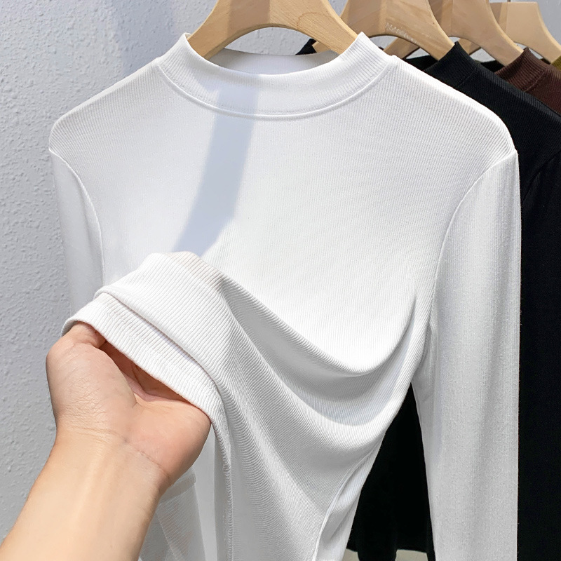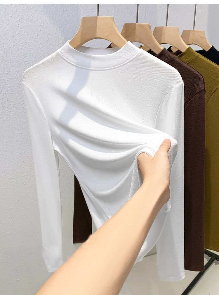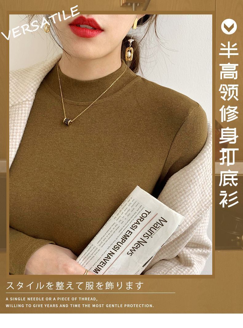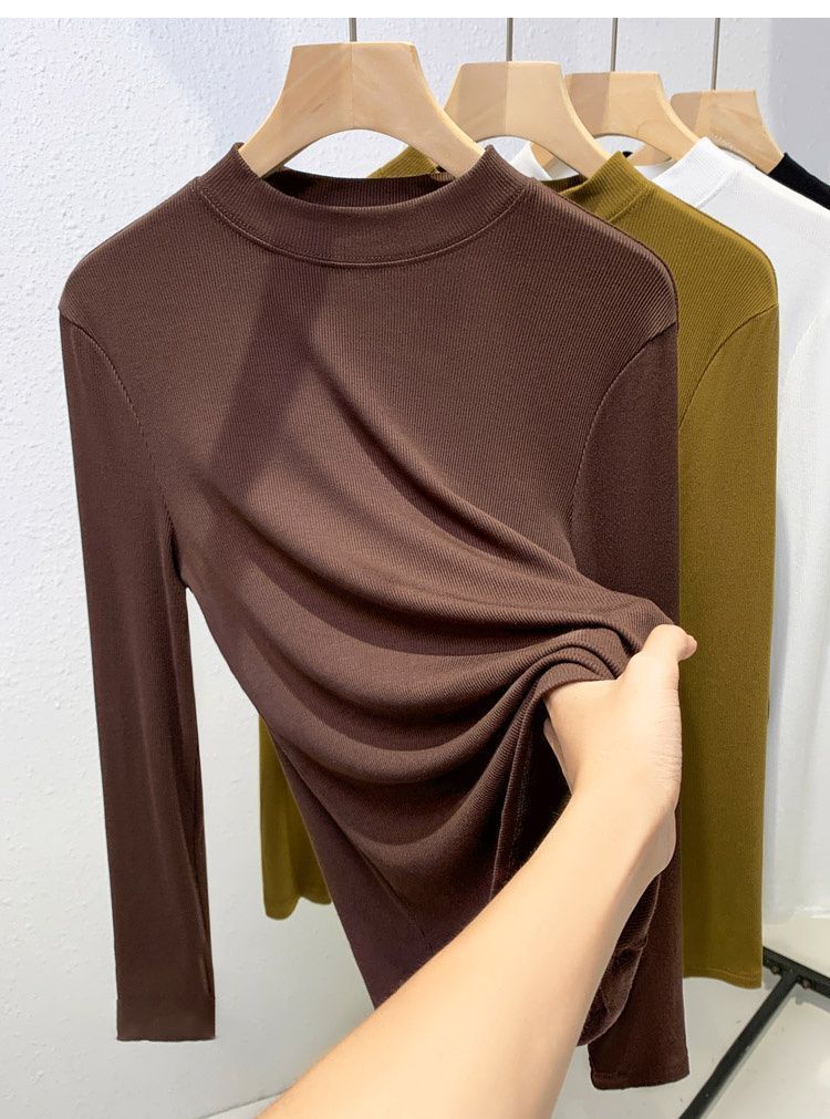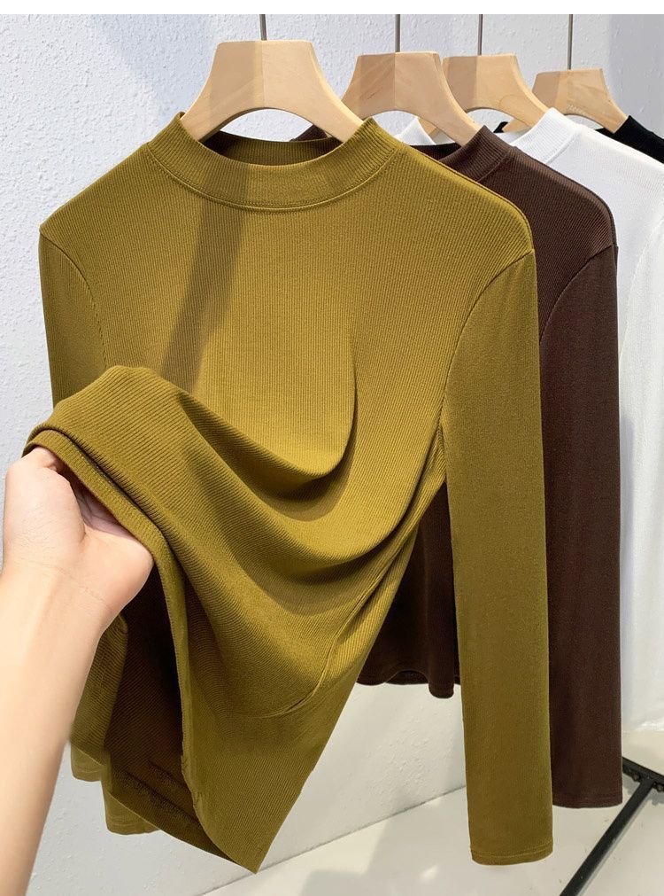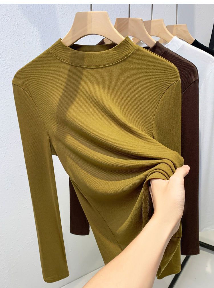 De Rong 따뜻한 어깨 긴팔 티셔츠 여성용 가을과 겨울 새로운 우아한 슬림핏 간단한 슬리밍 내베이스 셔츠 탑스토어 가기
