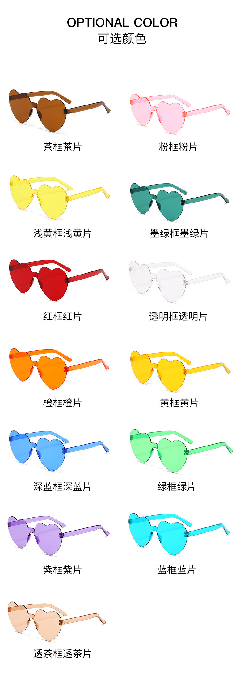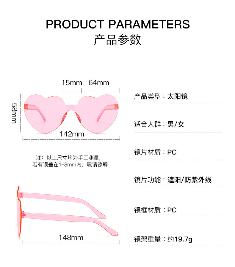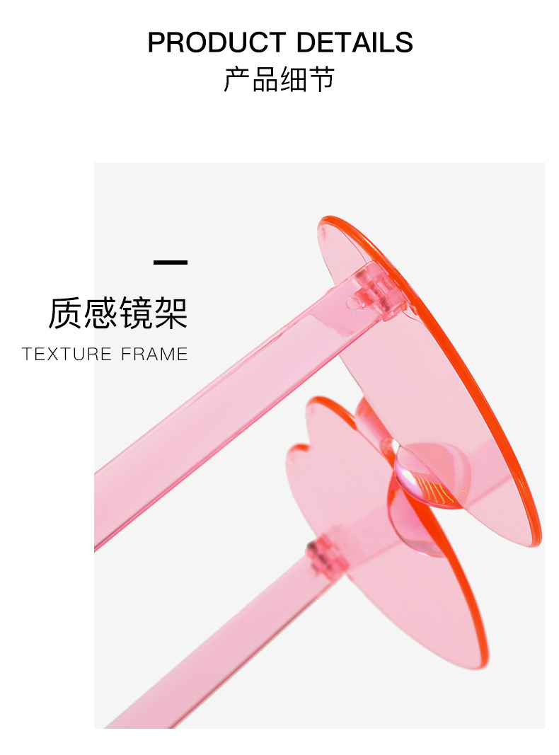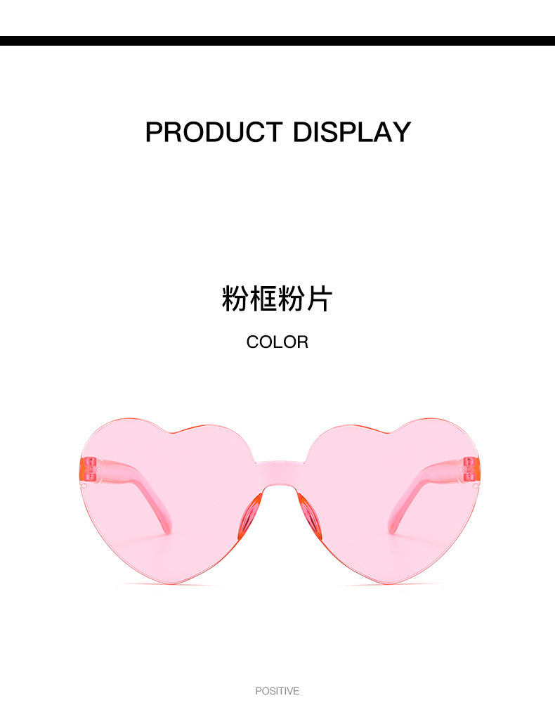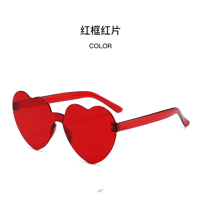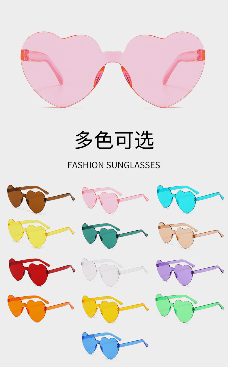 패셔너블한 원피스 하트형 선글라스, 캔디 컬러의 복숭아 하트 선글라스, 유럽과 미국의 크로스보더 원피스 러브 안경, 댄스 파티 안경스토어 가기