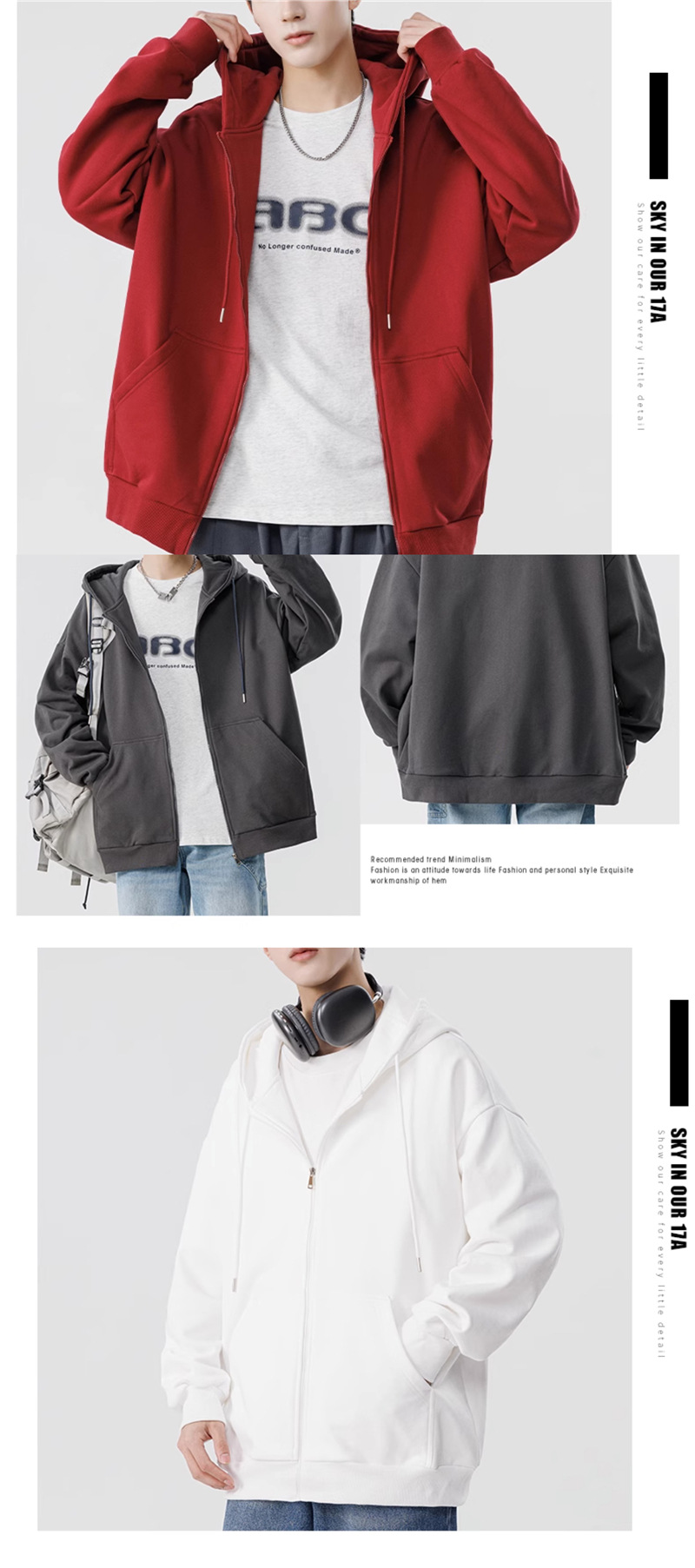 후드 스웨터 남자 2024 새로운 폭발 느슨한 지퍼 카디건 재킷 남자의 가을과 겨울 기모 두껍게 최고 트렌디스토어 가기