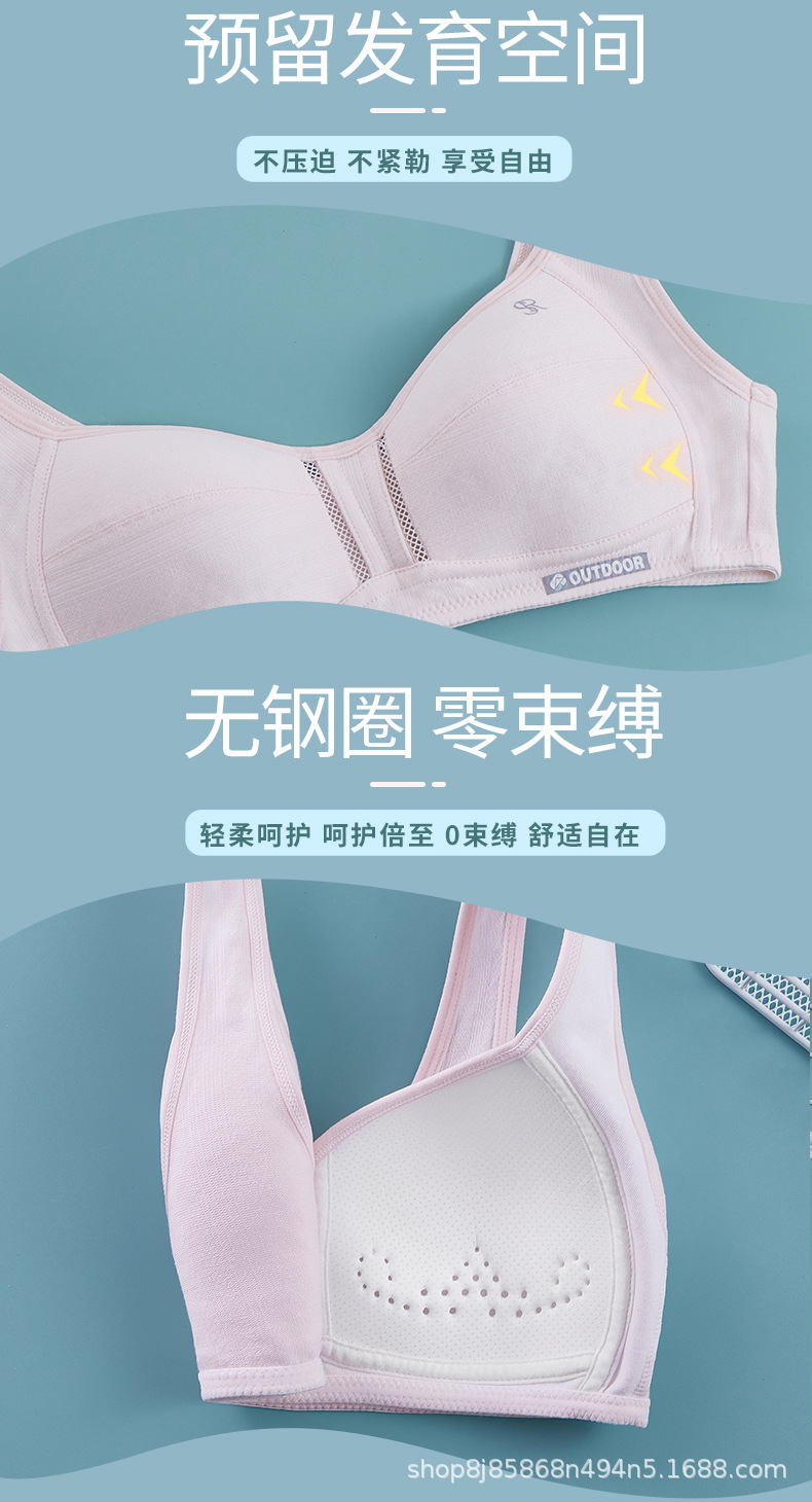 개발 소녀 브라 주니어 고등학교 학생 스포츠 충격 흡수 작은 조끼 안티 범프 걸스 속옷 고정스토어 가기