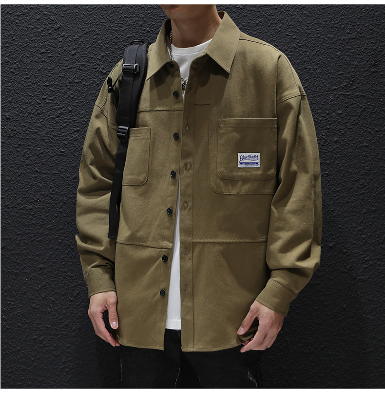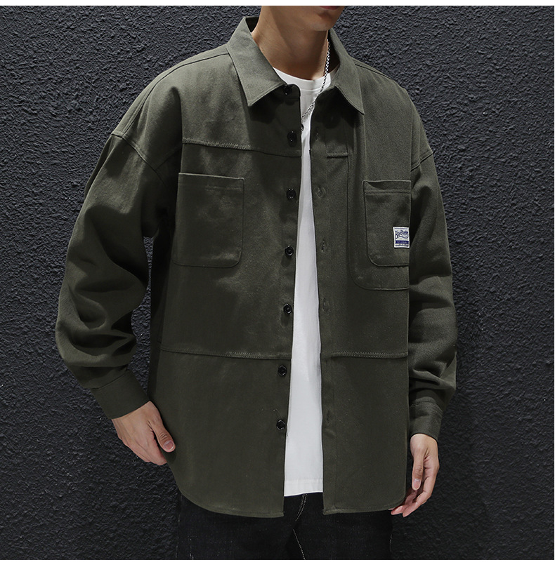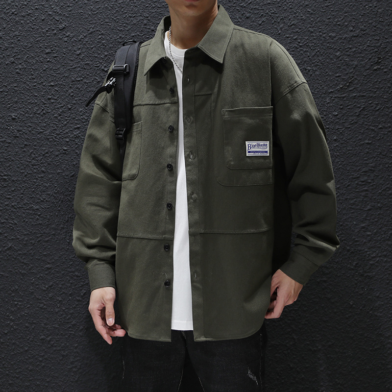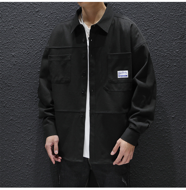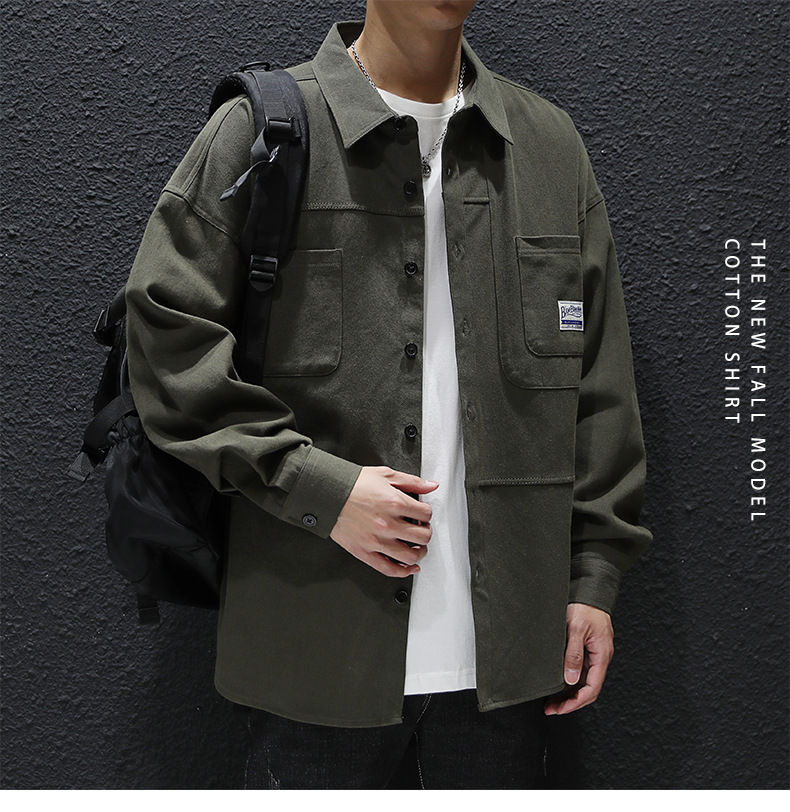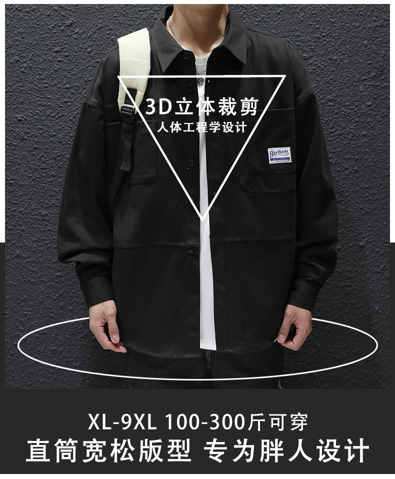가을 새 스타일 셔츠 남자의 긴 소매 순면 유행 일본 스타일 느슨한 지방 플러스 사이즈 남성 대형 300스토어 가기