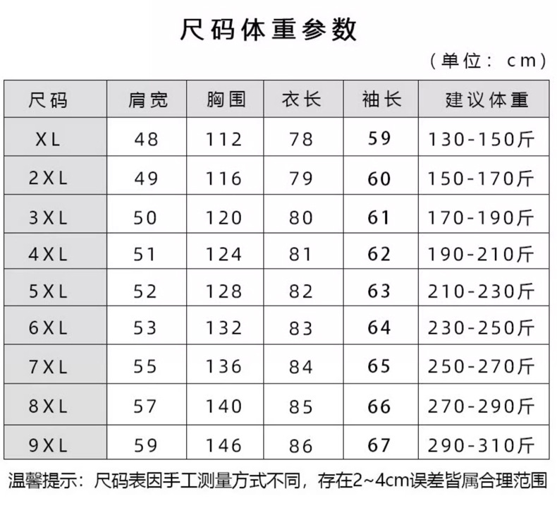 • 8XL은 135-145kg 사이즈에 맞습니다