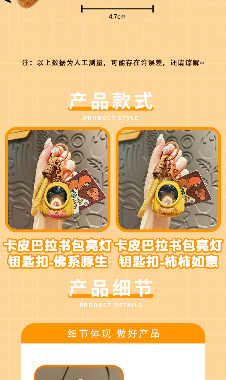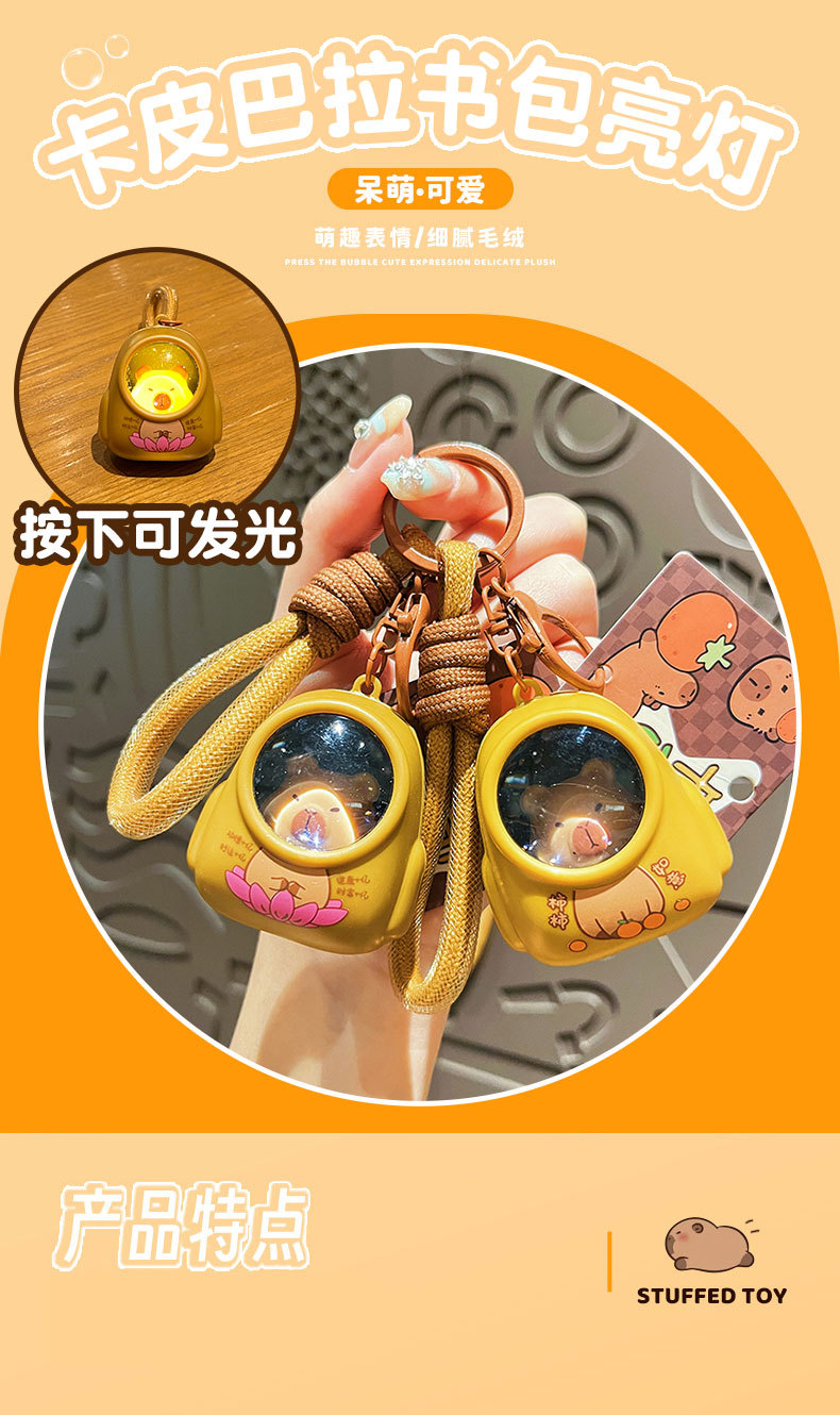 원래 카피 발라 스쿨백 조명 키 체인 귀여운 만화 카피 바라 빛나는 펜던트 커플 가방 작은 보석스토어 가기