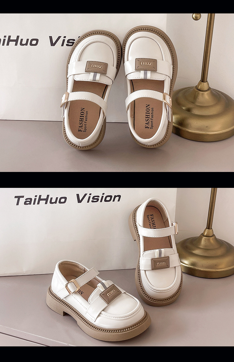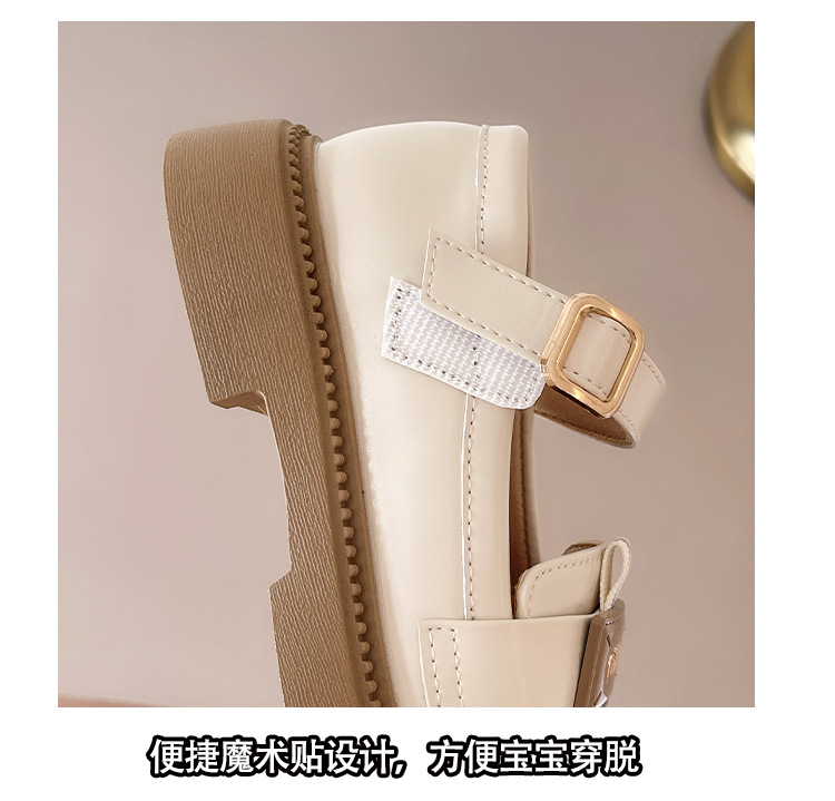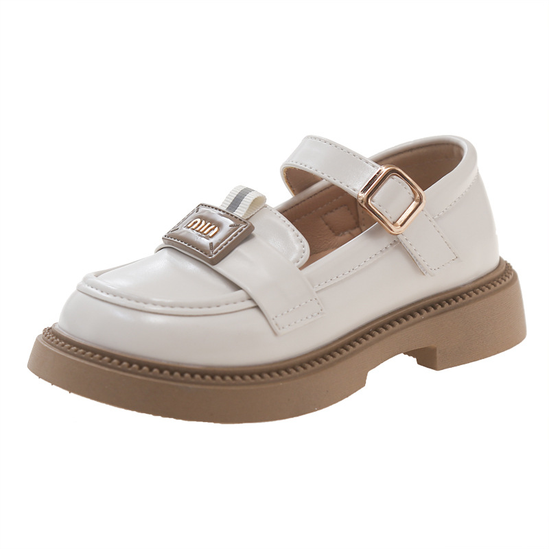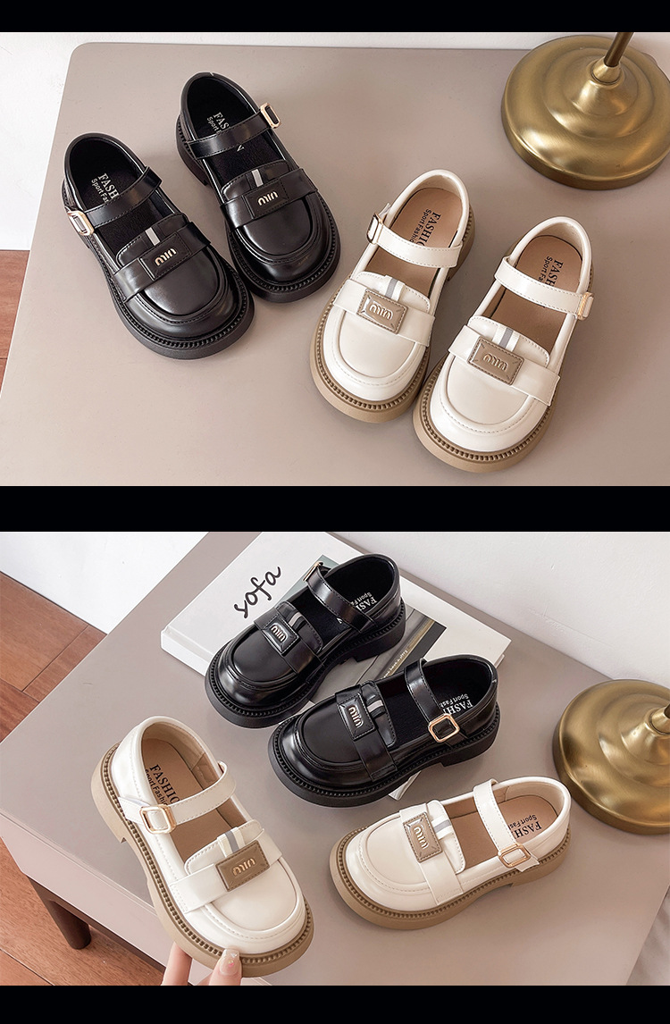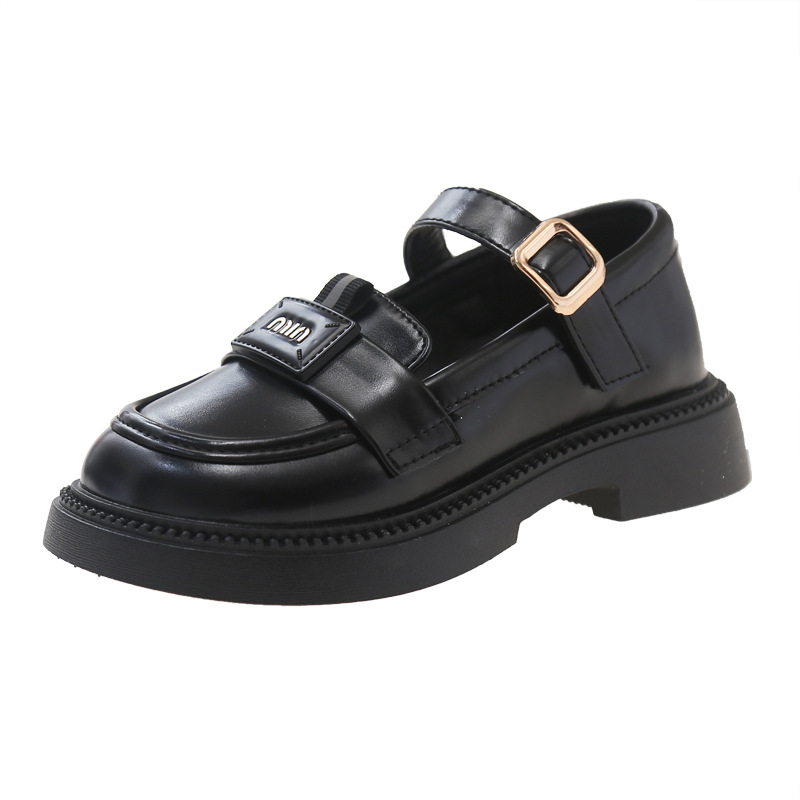 어린이 가죽 신발 2024 가을 새로운 cuhk 어린이 금속 버클 검은 작은 가죽 신발 소녀 신발 미끄럼 방지 학생 신발스토어 가기