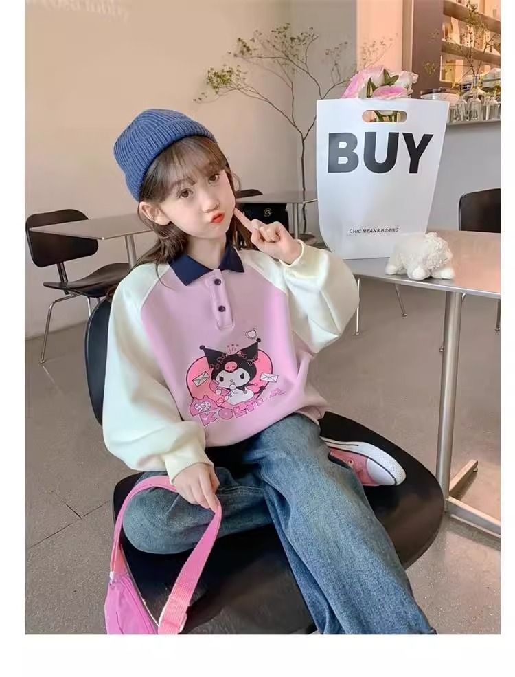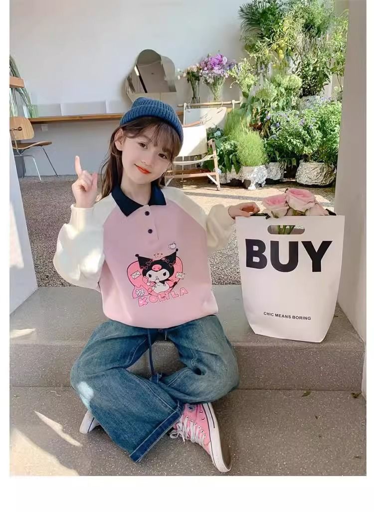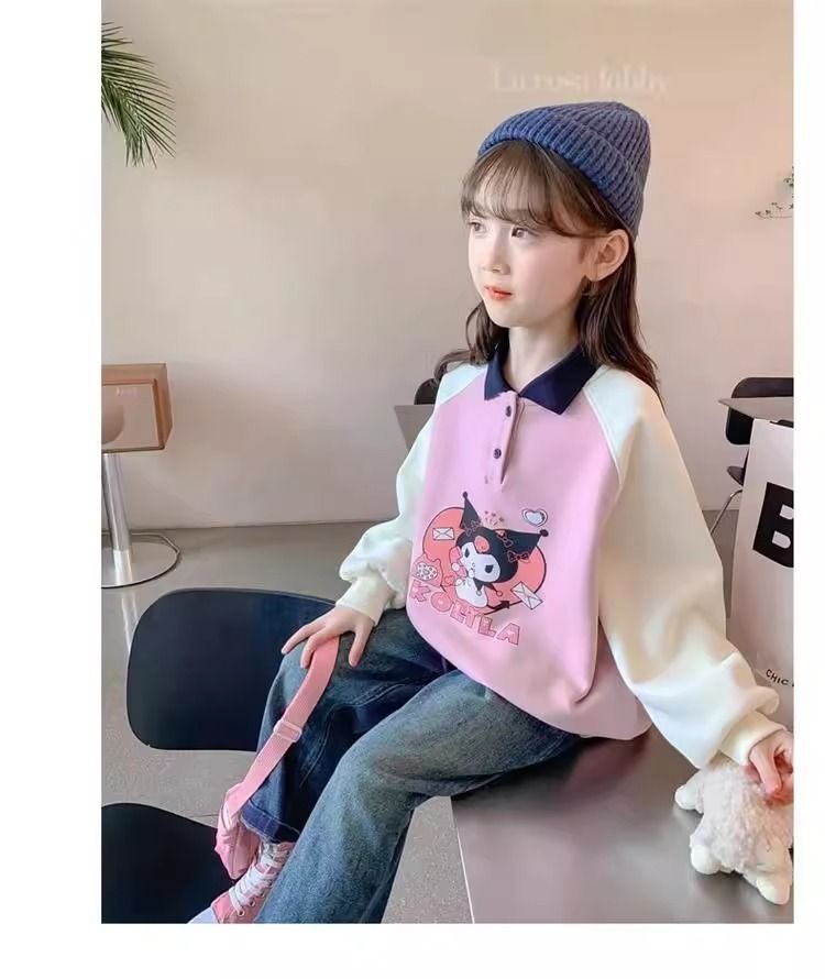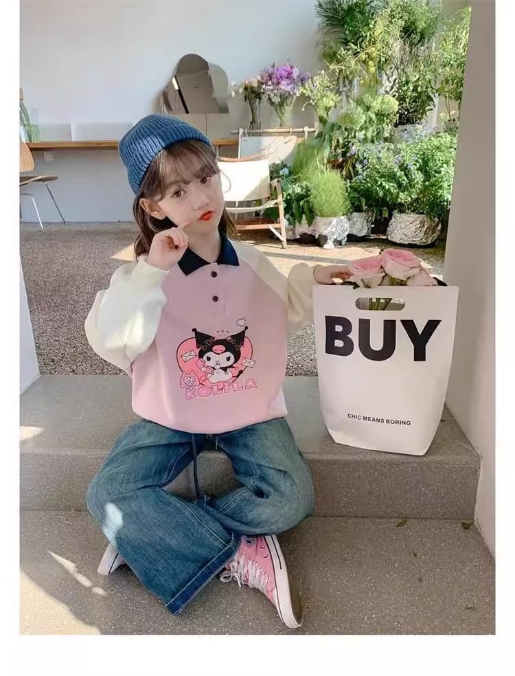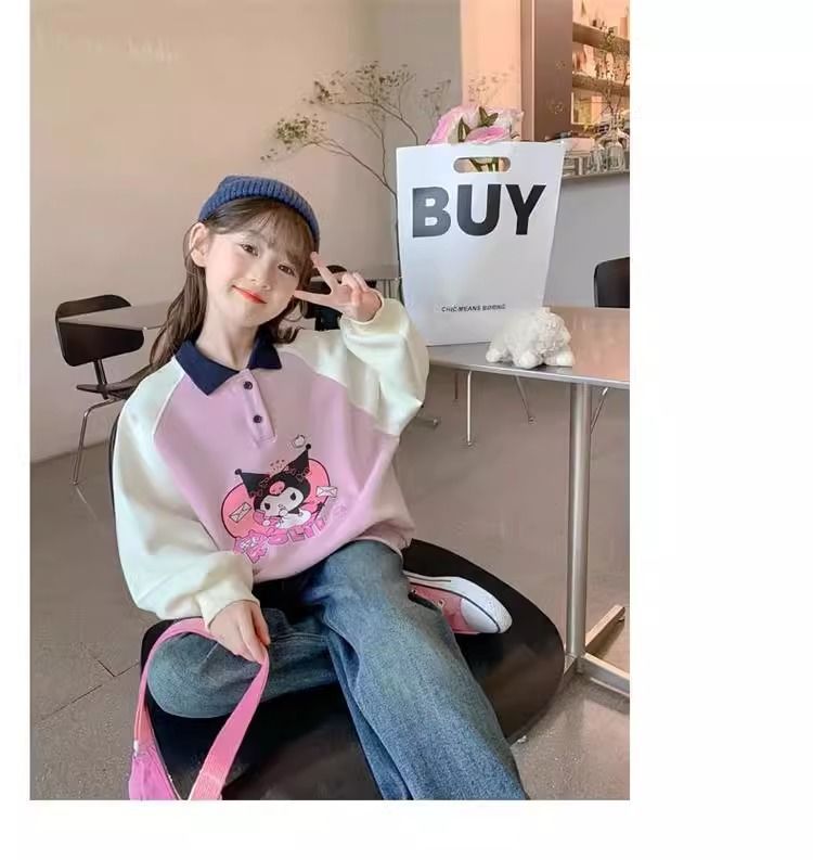 중간 및 봄 조수 어린이 최고 유행 소녀의 땀 봄과 가을 2024 새로운 서양식 어린이 어린 소녀의 POLO 칼라스토어 가기