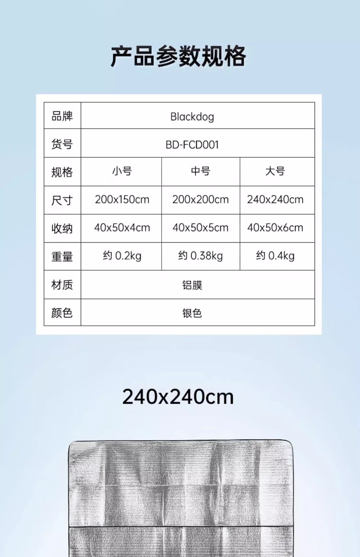 BLACKDOG 검은 개 야외 알루미늄 필름 댐프 방지 매트 캠핑 텐트 바닥 매트 바닥 매트 피크닉 휴대용 두꺼운 수면 매트