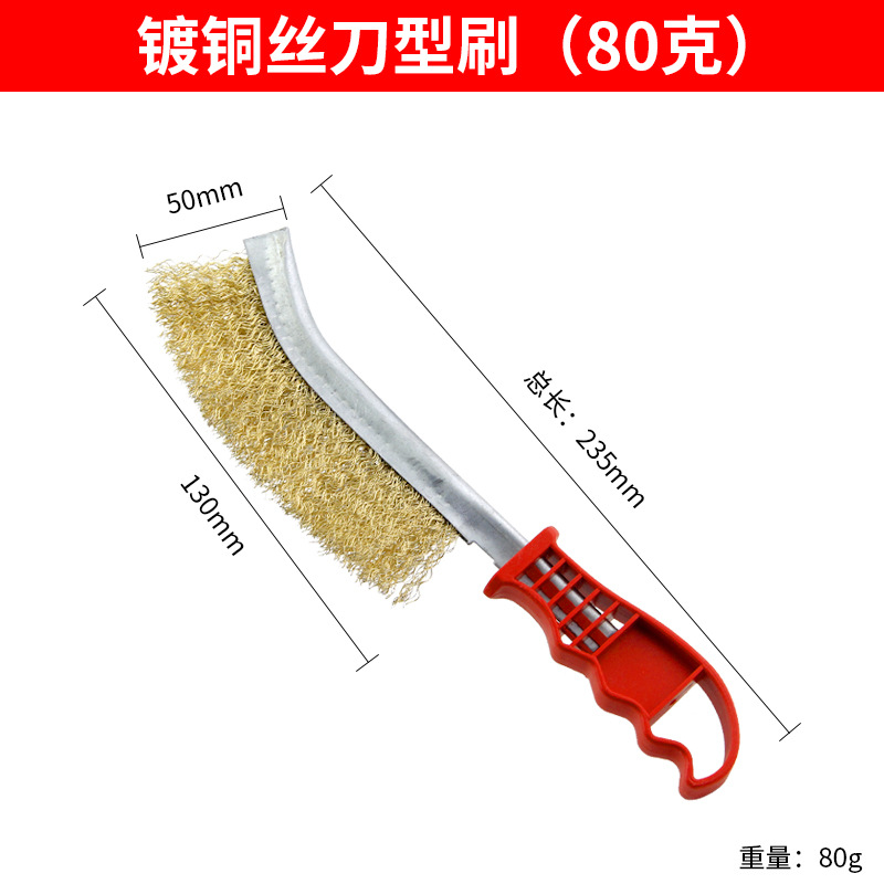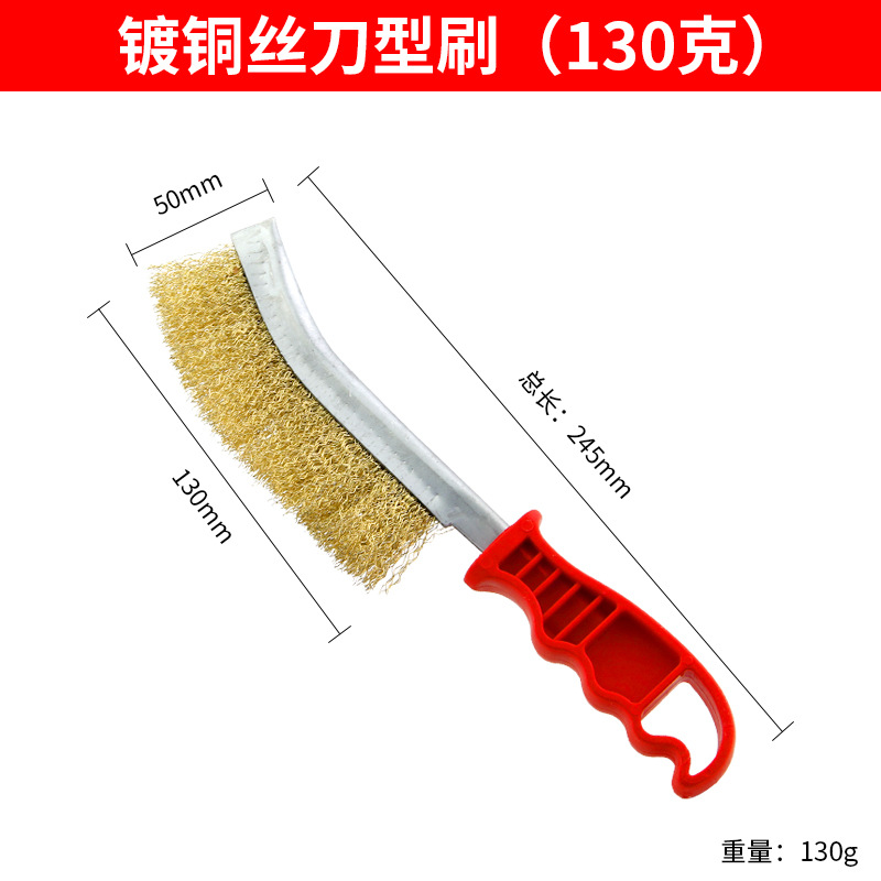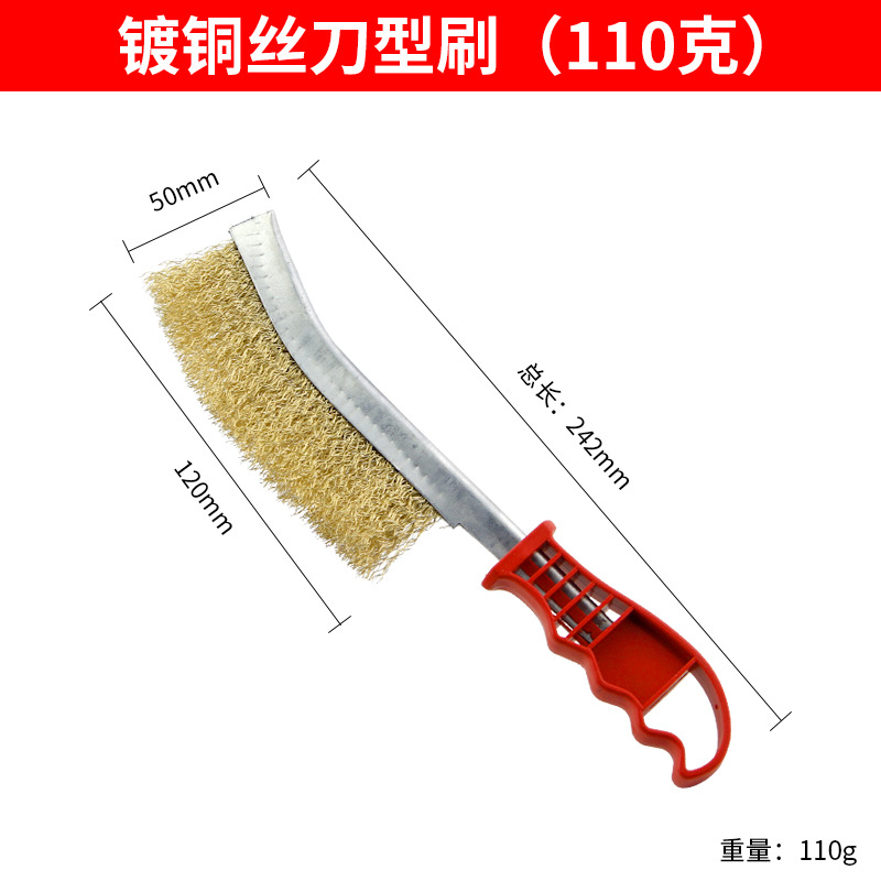 와이어 브러시, 구리 도금 강철 와이어 칼형 브러시, 휴대용 녹 제거, 청소, 오염 제거, 연마 및 디버링, 다기능 플라스틱 손잡이 브러시