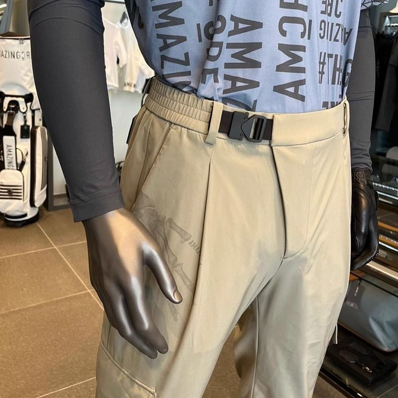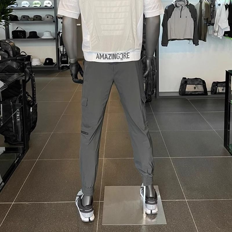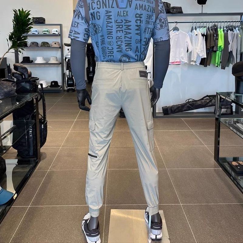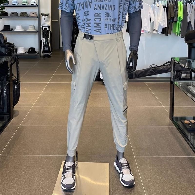 봄과 가을 새로운 한국 골프 남성 솔리드 컬러 불규칙한 스냅 버튼 종아리 바지 스포츠 및 레저 골프 바지스토어 가기