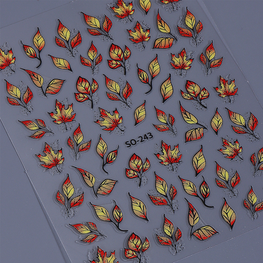 국경 간 새로운 네일 아트 스티커 도매 레이저 가을과 겨울 메이플 잎 추수 감사절 네일 접착제 3D 스티커스토어 가기