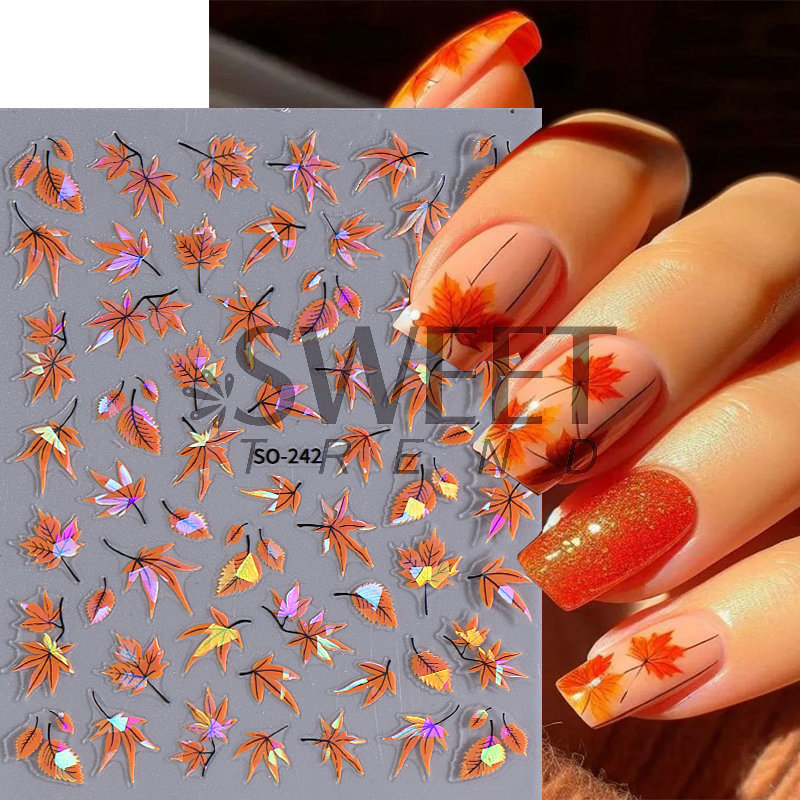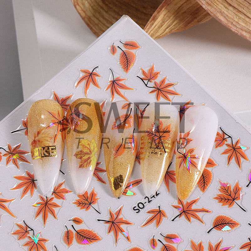 국경 간 새로운 네일 아트 스티커 도매 레이저 가을과 겨울 메이플 잎 추수 감사절 네일 접착제 3D 스티커