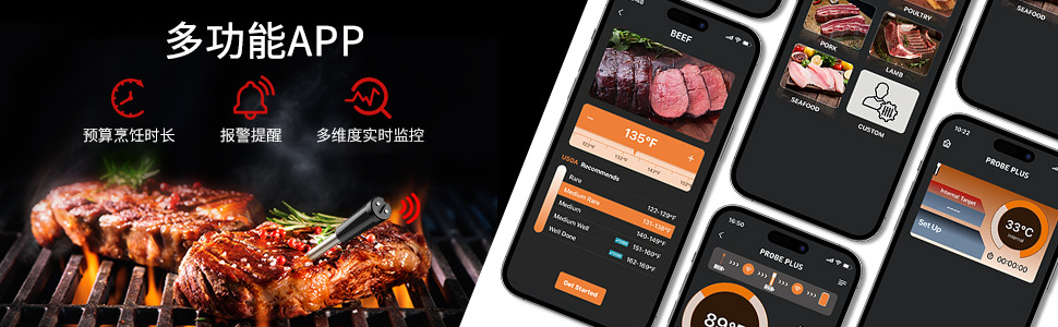 국경 간 뜨거운 판매 단일 바늘 블루투스 식품 온도계 디지털 디스플레이 무선 스마트 주방 오븐 바베큐 식품 온도계스토어 가기