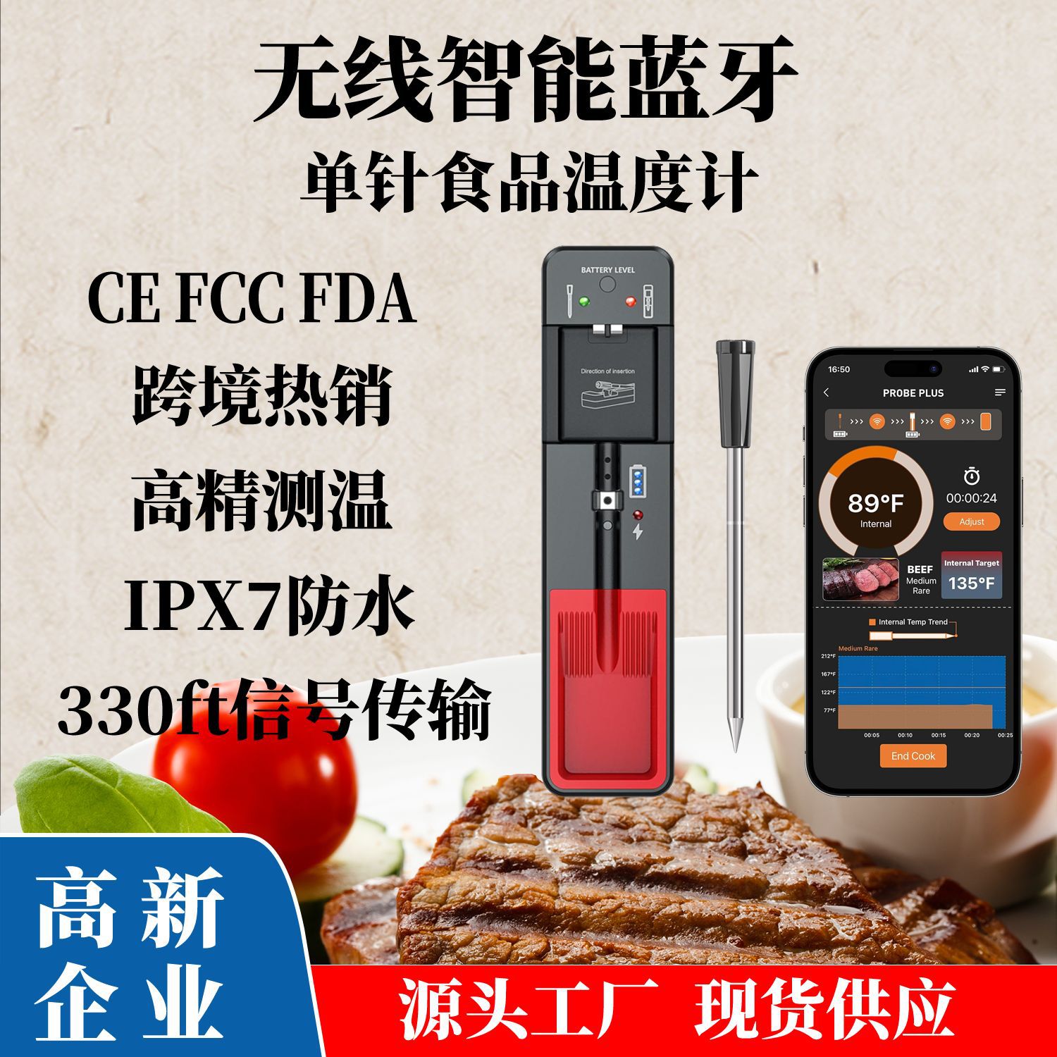 국경 간 뜨거운 판매 단일 바늘 블루투스 식품 온도계 디지털 디스플레이 무선 스마트 주방 오븐 바베큐 식품 온도계
