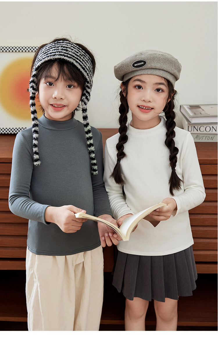 어린이 가을 및 겨울 모달 면 샌딩 베이스 셔츠 중간 칼라 여성 남성 어린이 최고 싱글 피스 아동복 긴팔 패밀리 의류스토어 가기