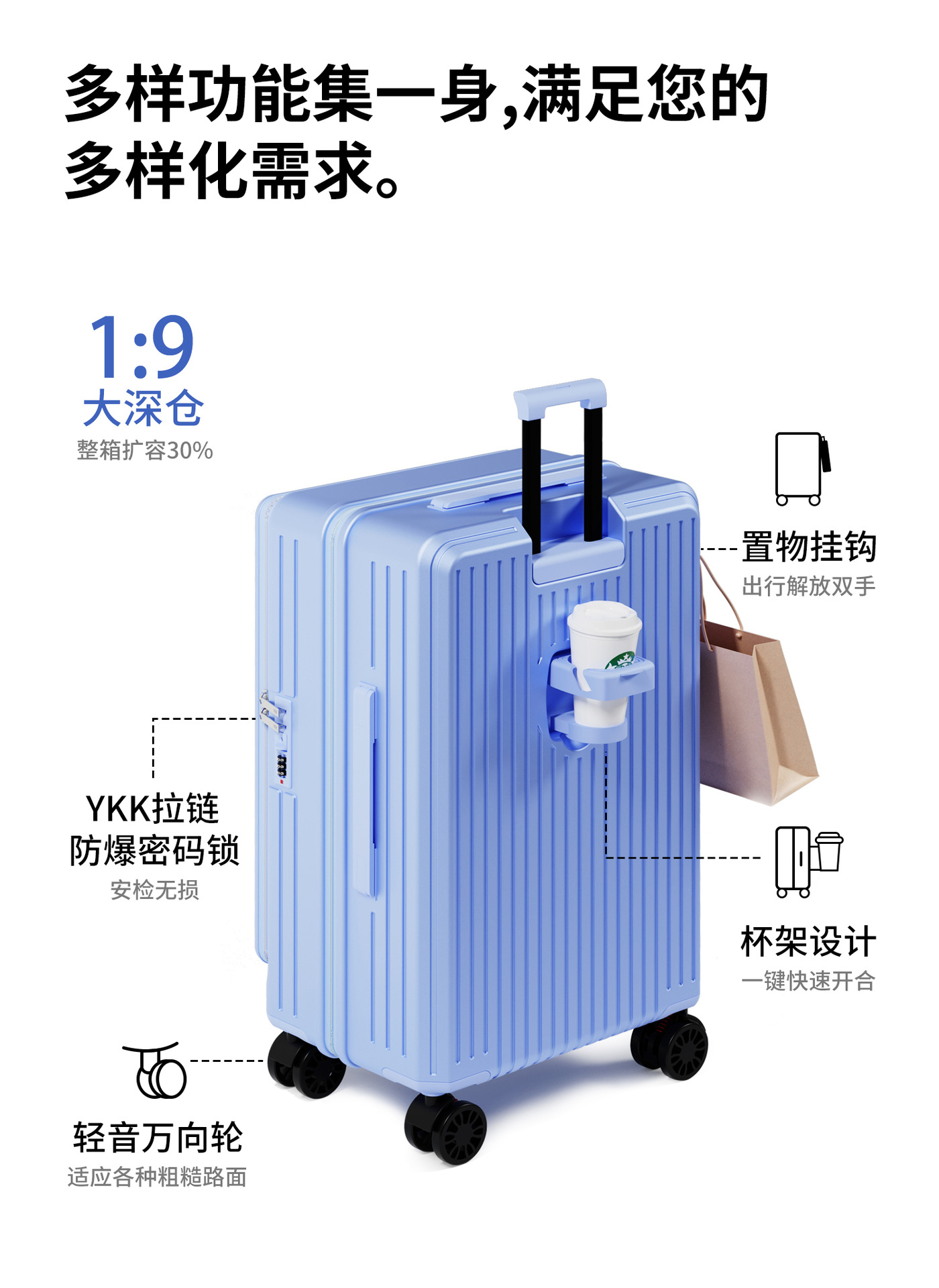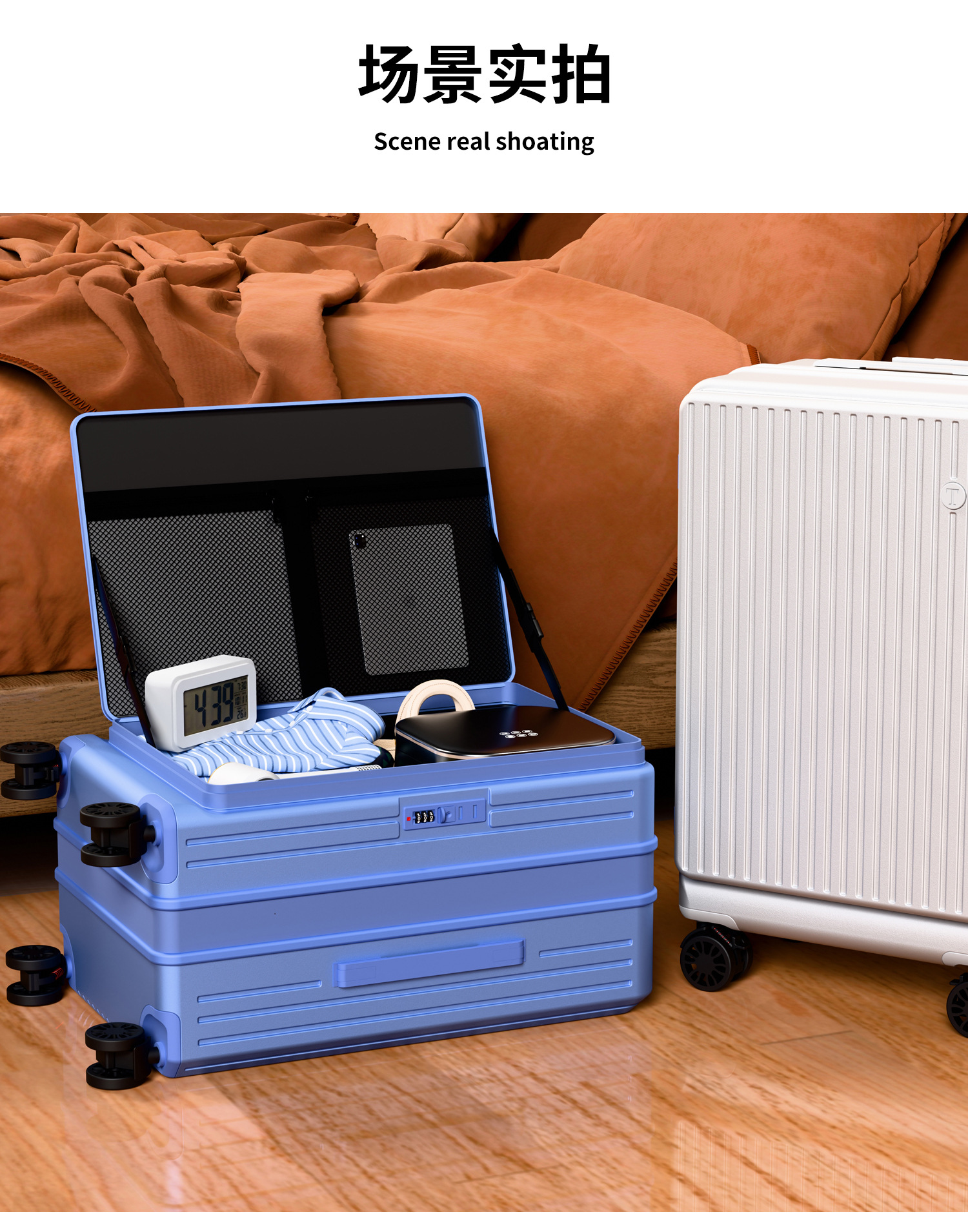 대외 무역 다기능 전면 개방형 가방 여성용 소형 탑승 케이스 20inch 학생 트롤리 케이스 범용 휠 가방스토어 가기
