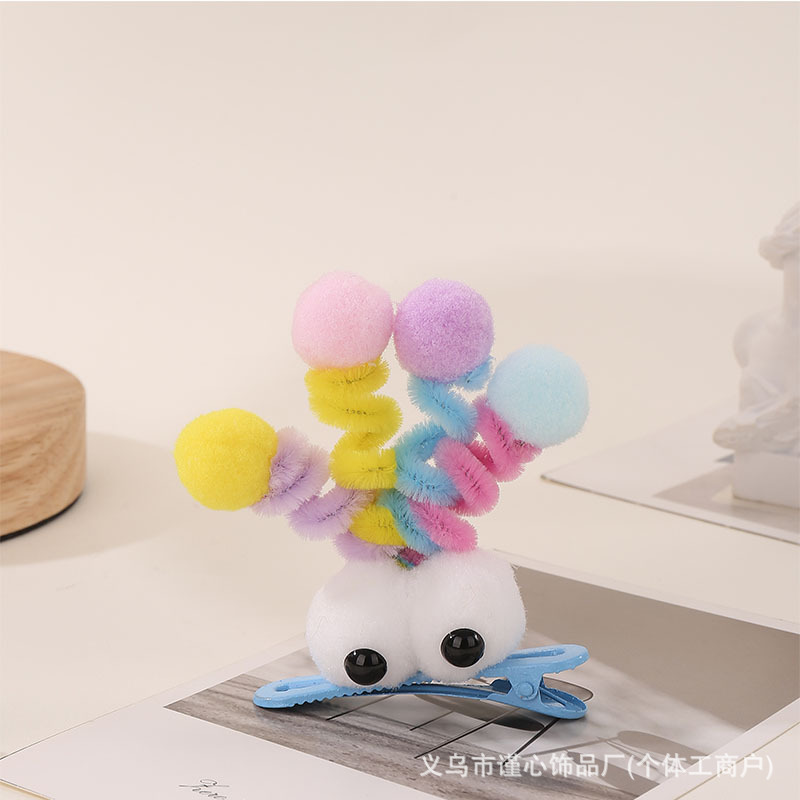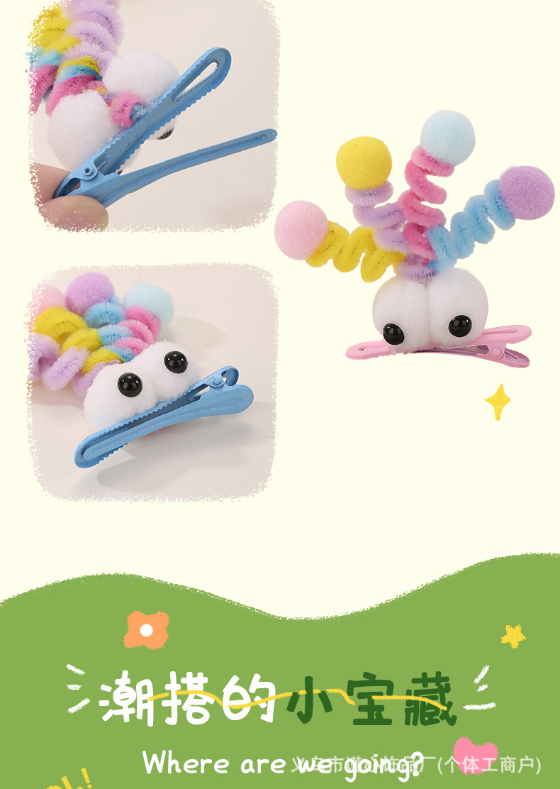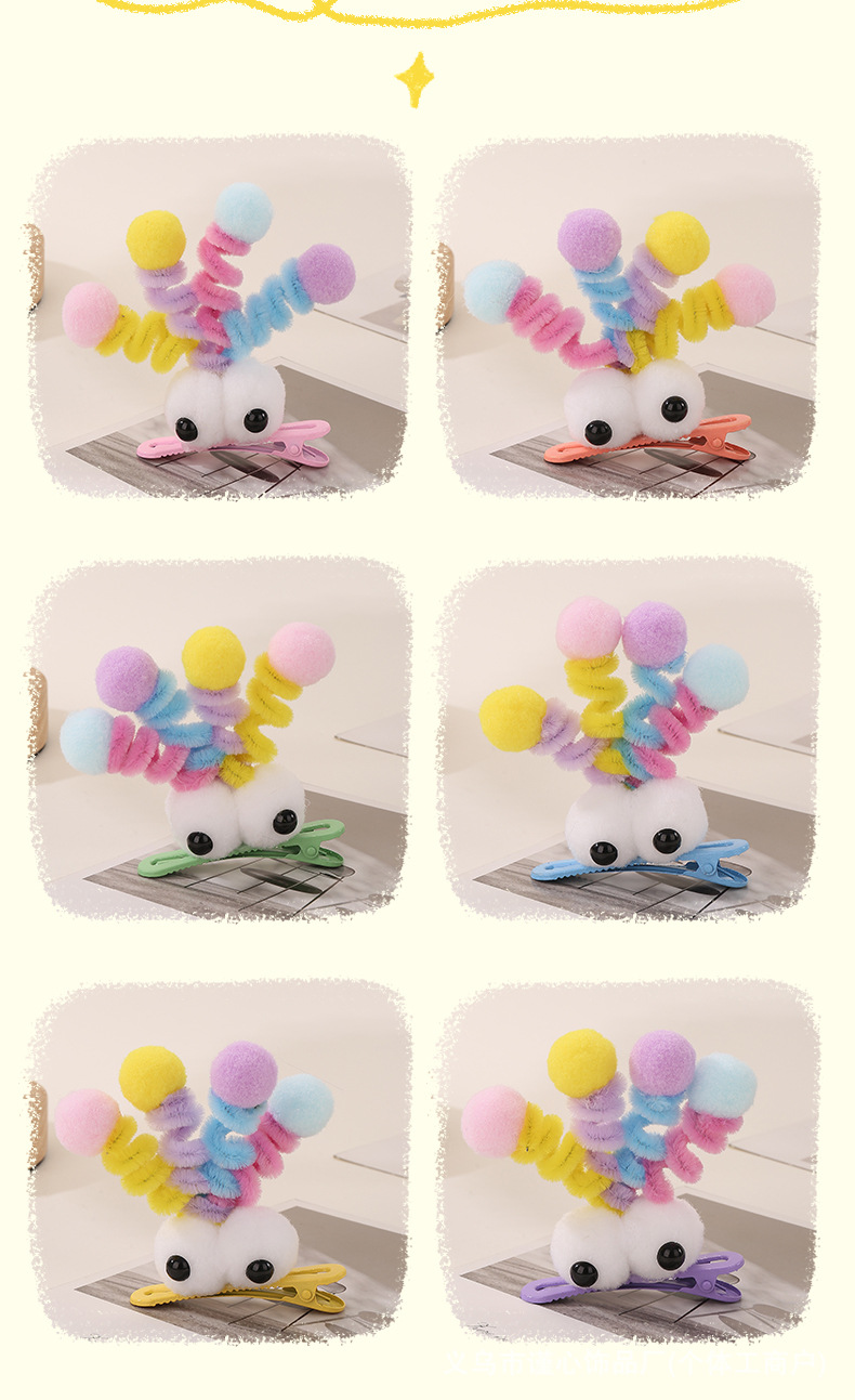 도파민 봄 봉제 머리핀 재미 재미 큰 눈 색깔 트위스트 바 머리핀 소녀 덕빌 클립 도매스토어 가기