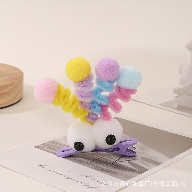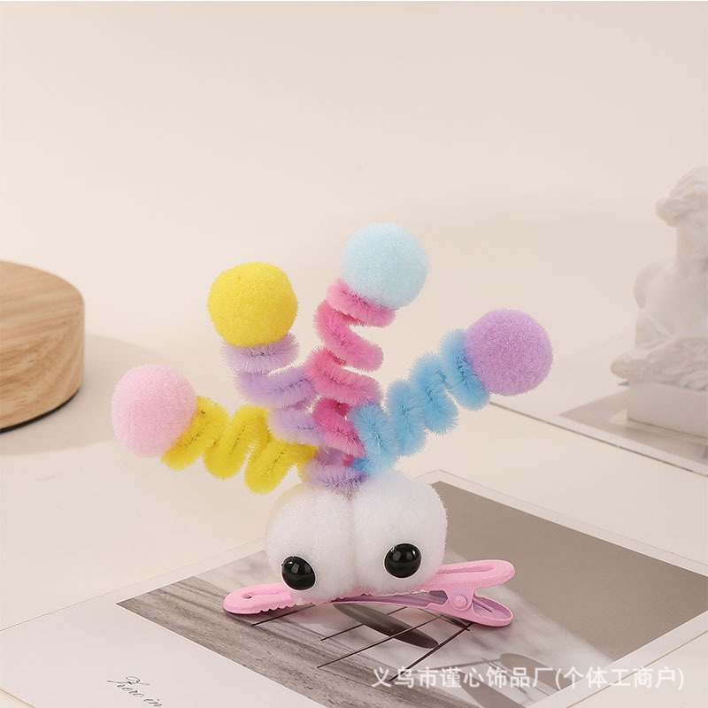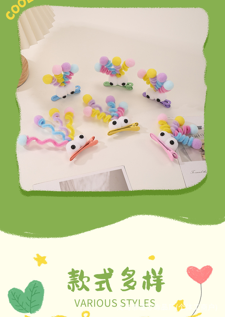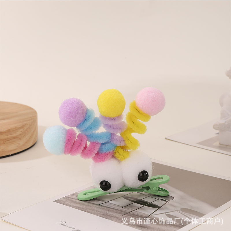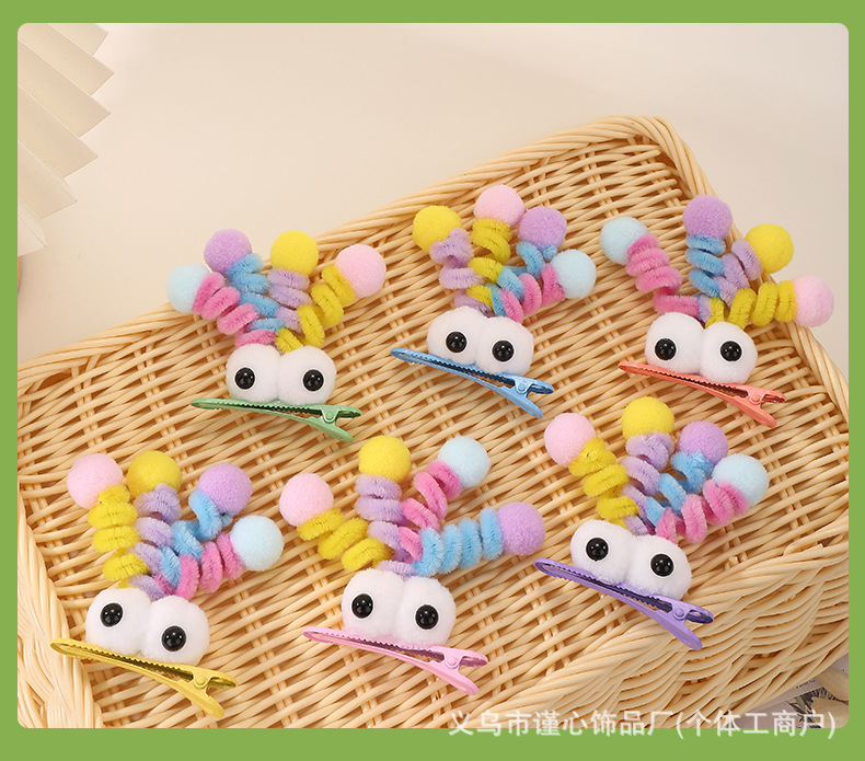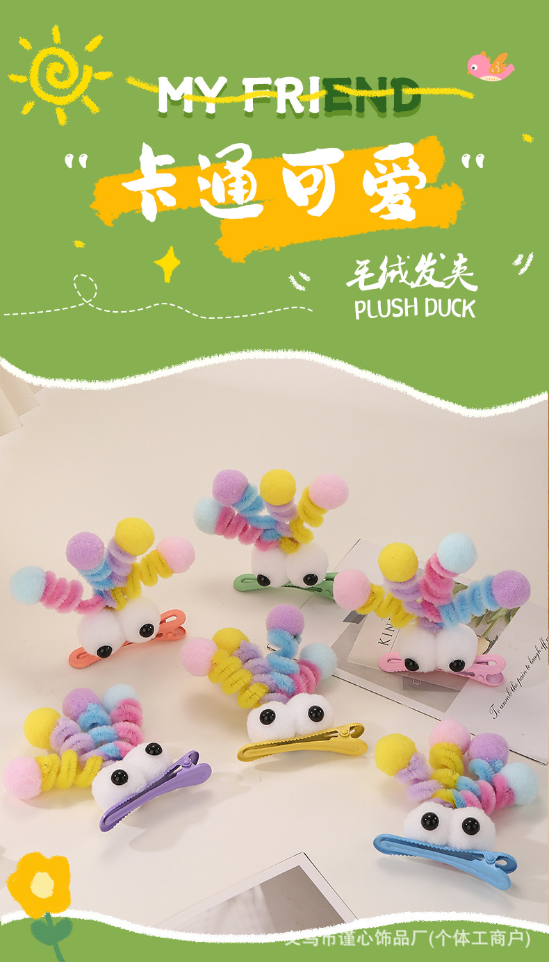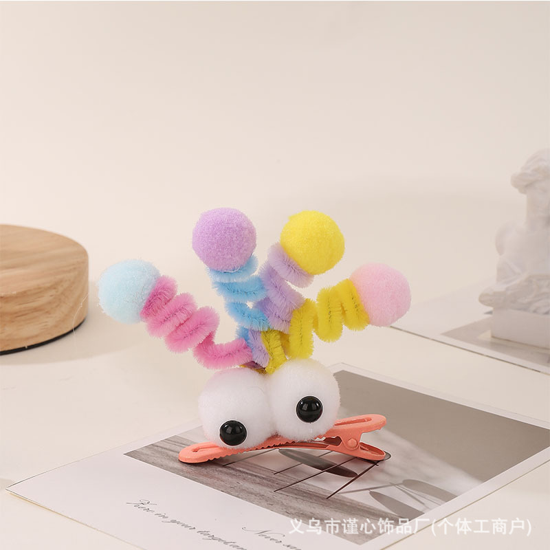 도파민 봄 봉제 머리핀 재미 재미 큰 눈 색깔 트위스트 바 머리핀 소녀 덕빌 클립 도매