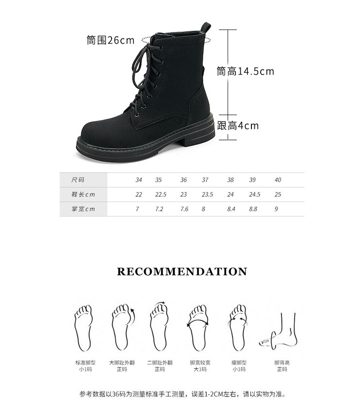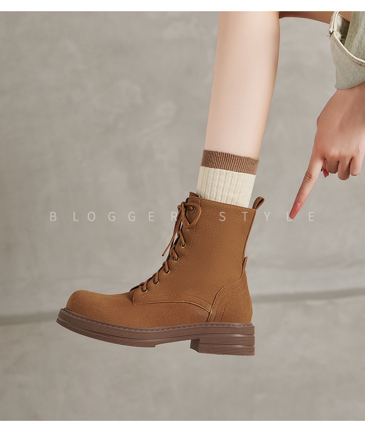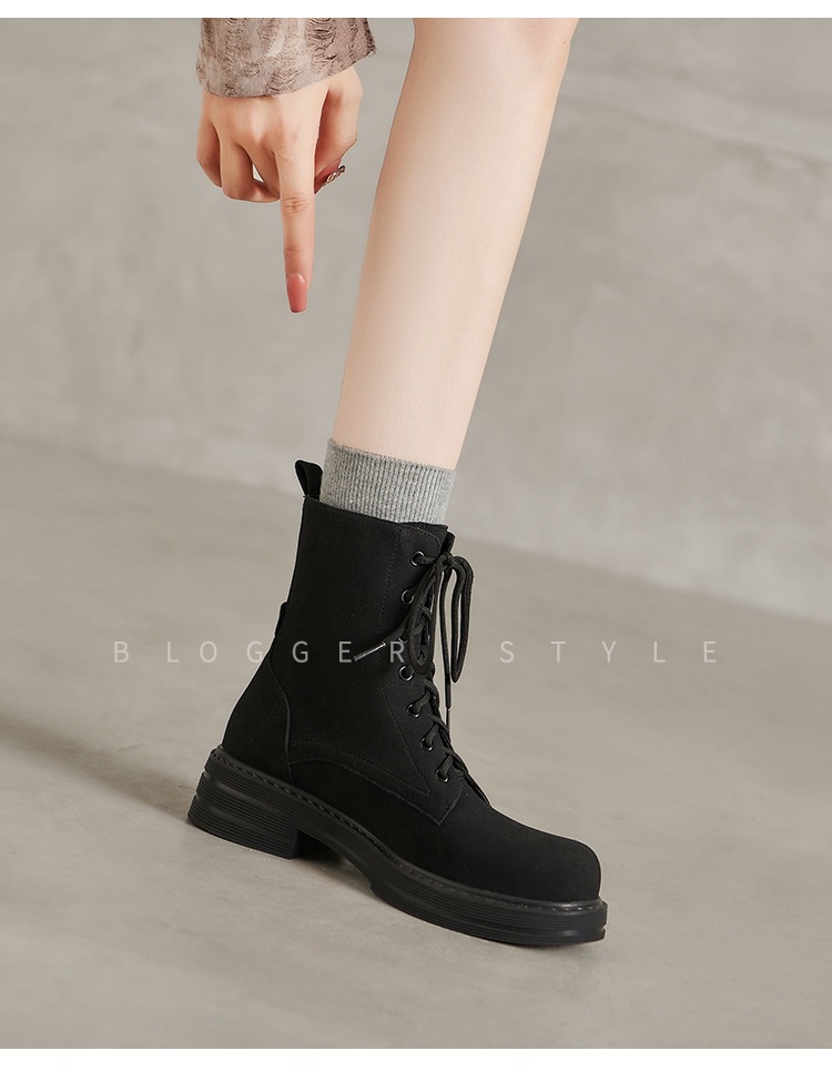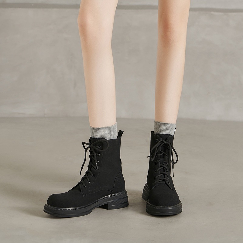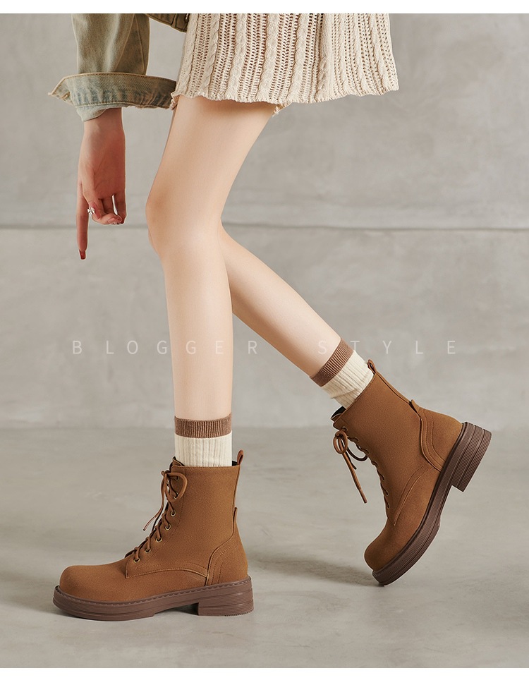 40-43 대형 부츠 두꺼운 힐 발목 부츠 여성 가을 새로운 영국 스타일 레이스 업 마틴 부츠 두꺼운 스크럽 미들 힐 부츠스토어 가기