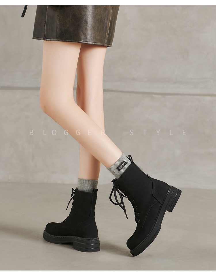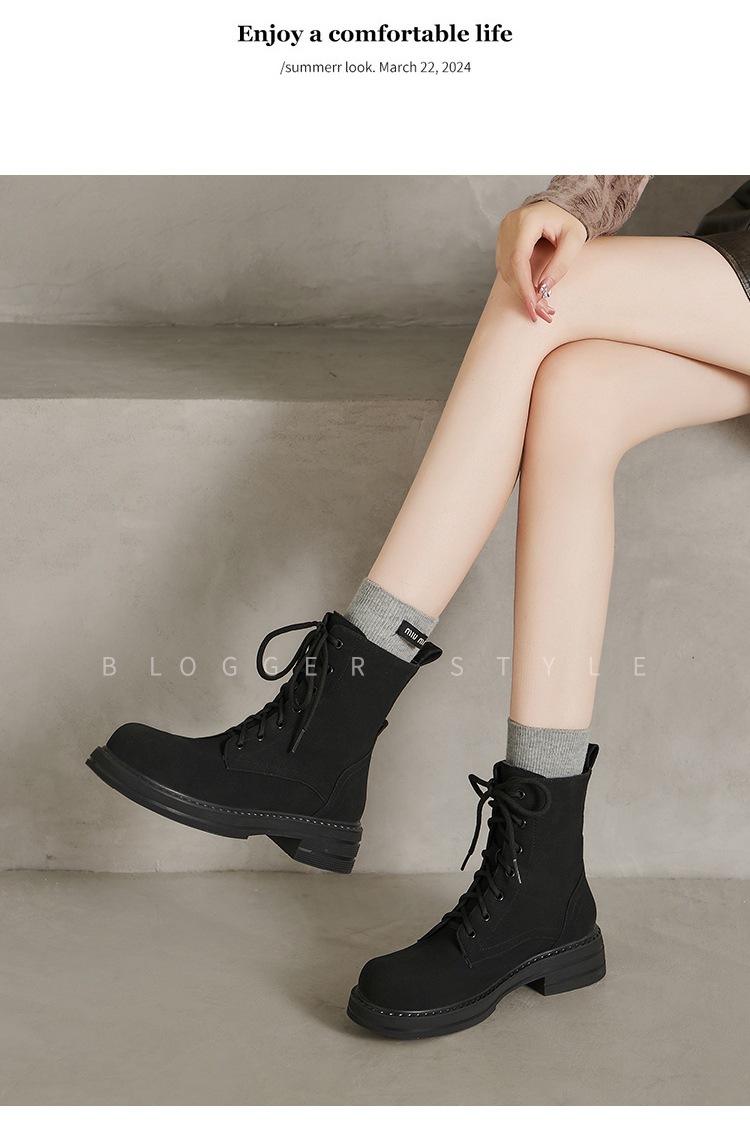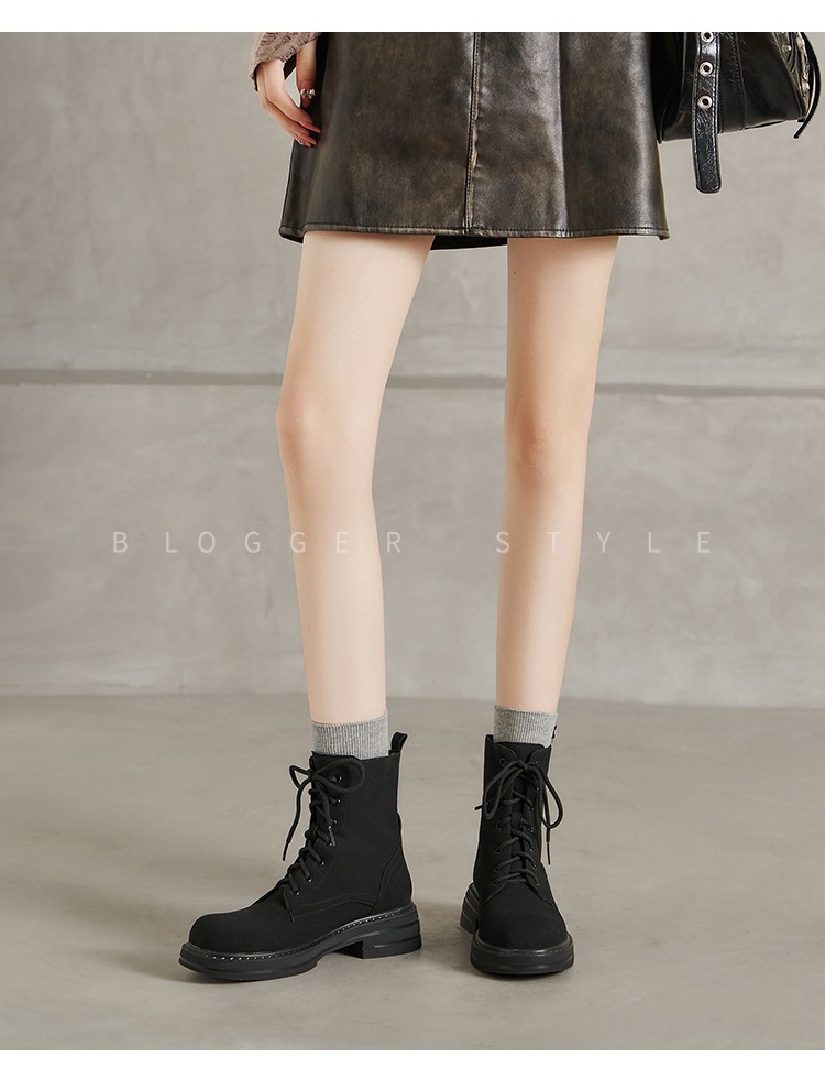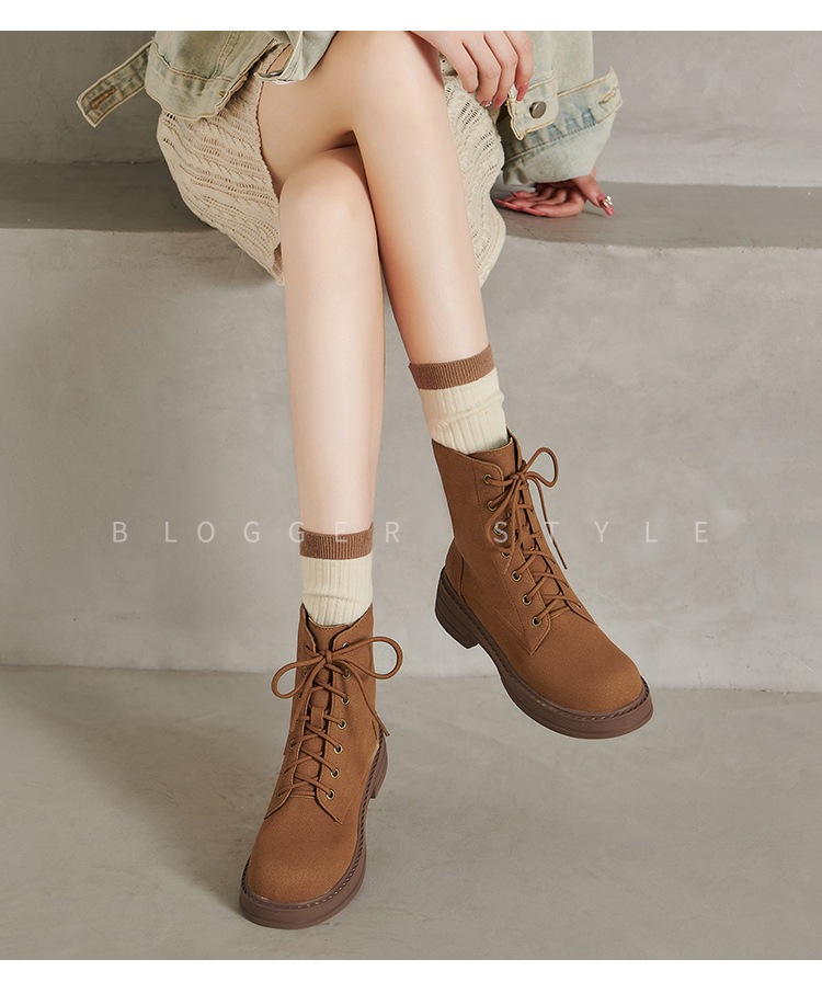 40-43 대형 부츠 두꺼운 힐 발목 부츠 여성 가을 새로운 영국 스타일 레이스 업 마틴 부츠 두꺼운 스크럽 미들 힐 부츠스토어 가기
