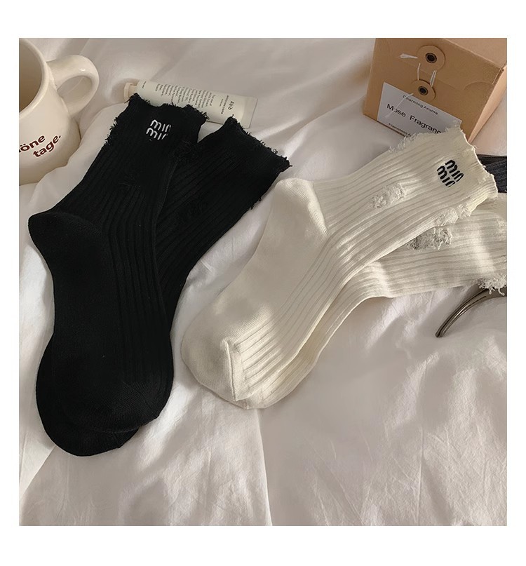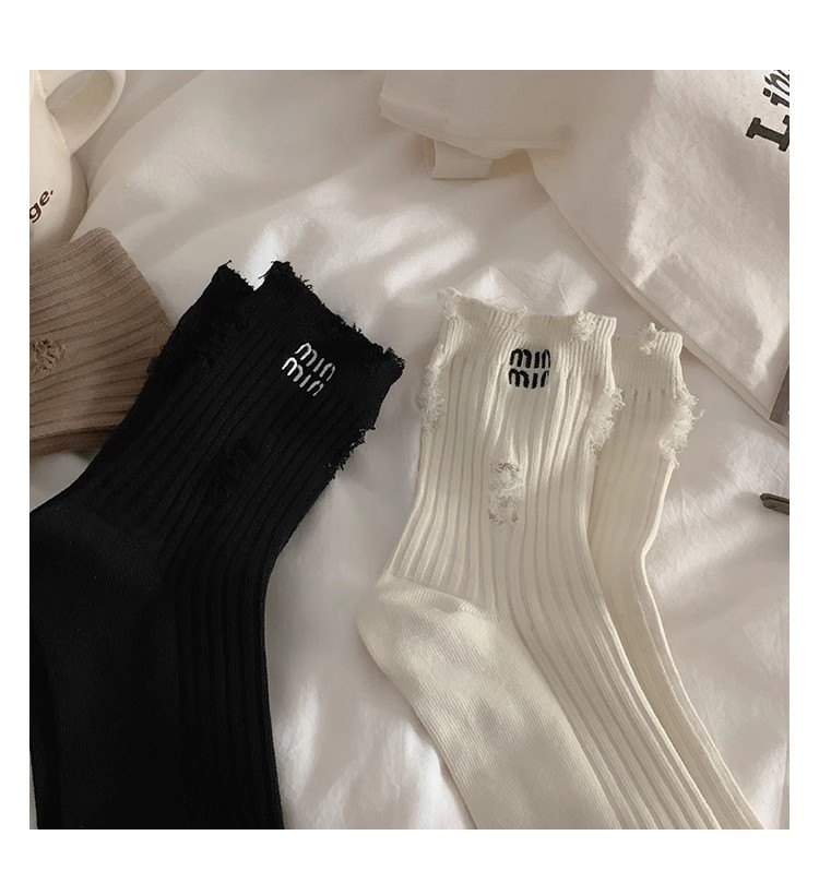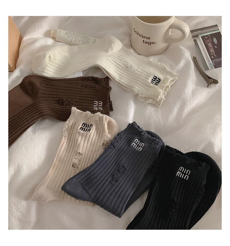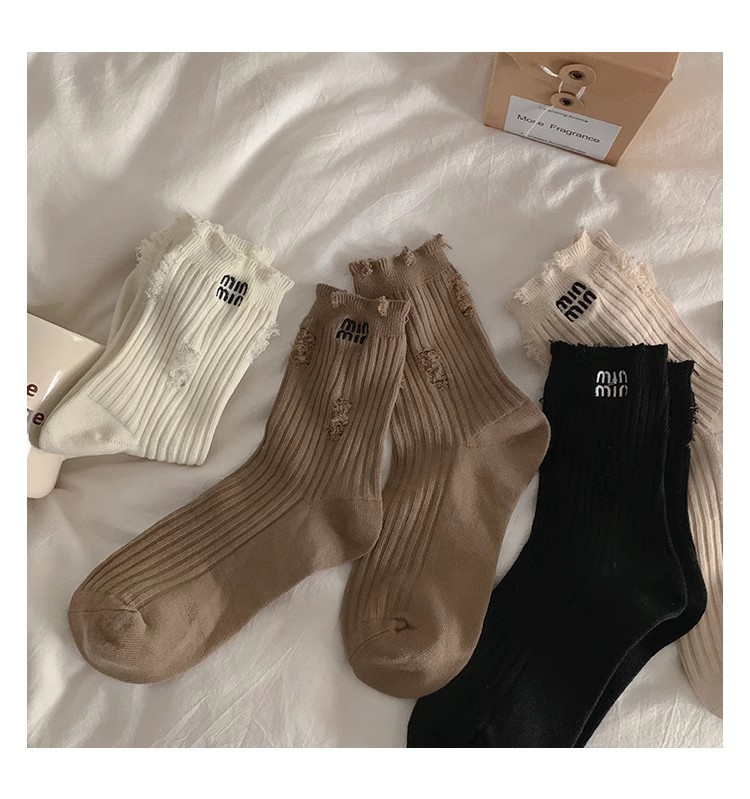 홀 양말 여성 중간 길이 양말 Ins 트렌디 인터넷 인기있는 봄과 가을 코튼 양말 일본 스타일 맞춤형 더미 거지의 스타킹스토어 가기