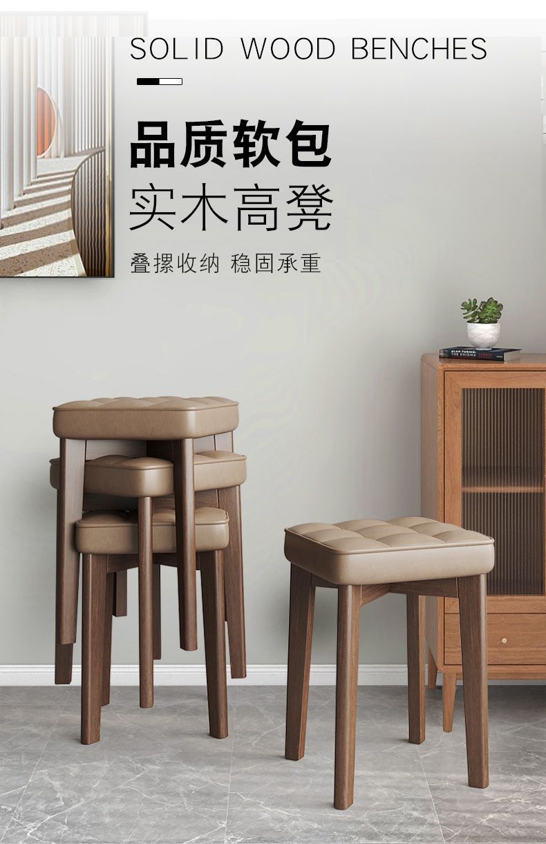 고급 상업용 단단한 나무 다리 가구 쌓을 수 있는 부드러운 광장 의자 거실 식당 현대 간단한 벤치 식탁 의자스토어 가기
