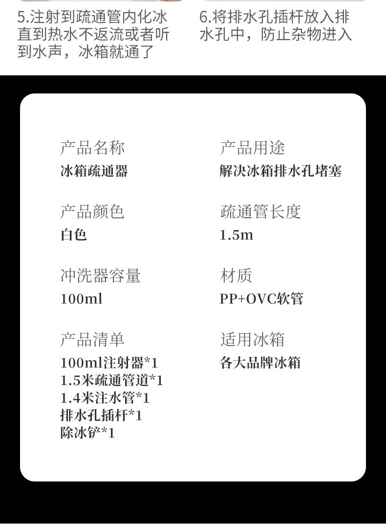 냉장고 준설 배수 구멍 물 차단 청소 도구 준설 수로 청소 가정용 청소기 5 피스 세트
