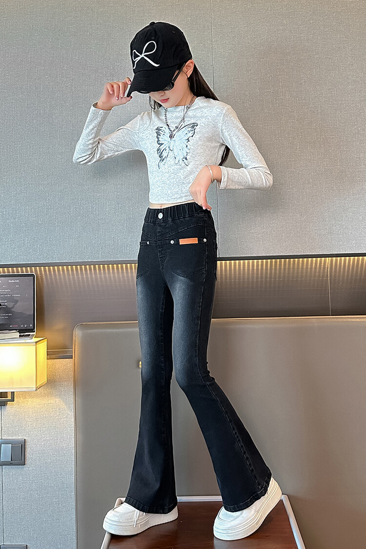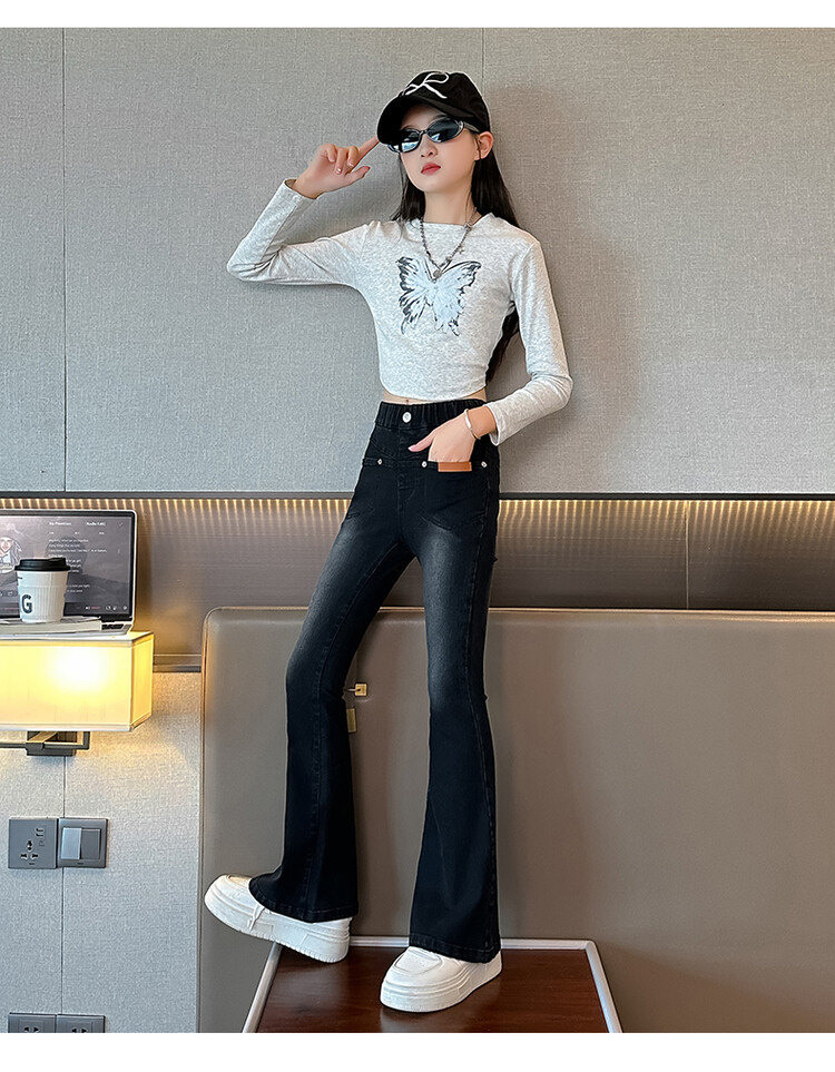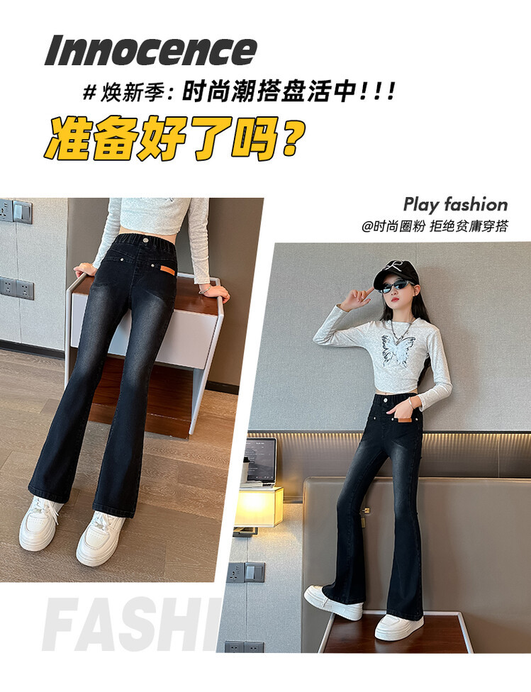 소녀 바지 봄과 가을 2023 새로운 서양식 사이버 인기 어린이 가을 청바지 여성의 큰 어린이 유행 바지스토어 가기