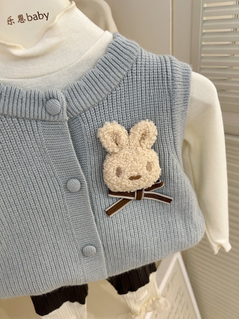 [Xiaoxian Ning] 여아 가을 겨울 블루 토끼 조끼 + 레이스 레깅스, 귀엽고 트렌디한 봄 조끼