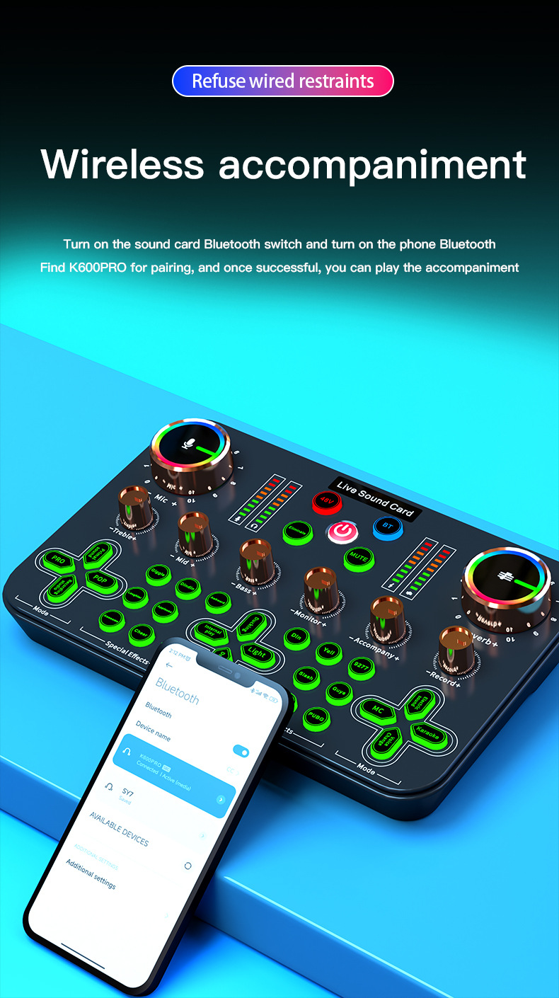 K700 영어 버전 소스 공장 사운드 카드 라이브 특수 장비 48V 캐논 사운드 카드 K 노래 앵커 흔들어 음성 크로스 테두리
