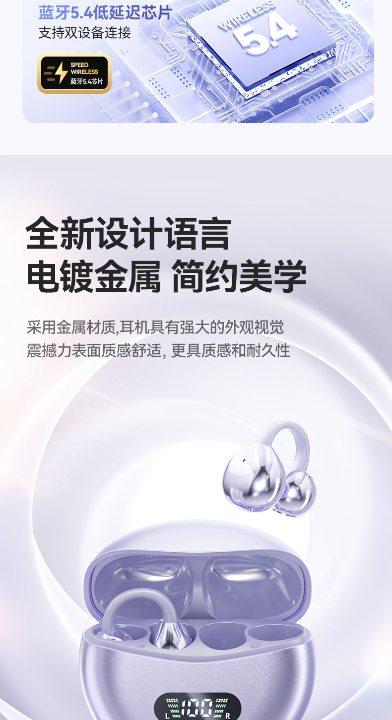 2025년 신형 블루투스 헤드셋, 무선 공기 골전도, 이어클립형 스포츠 소음 감소, 러닝, 고품질 배터리 수명