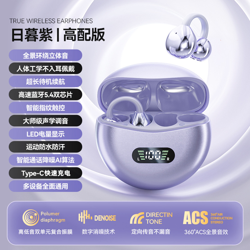 • 히구라시 퍼플 [LED 전원 디스플레이]★블루투스 5.4 칩★장시간 착용해도 아프지 않음]