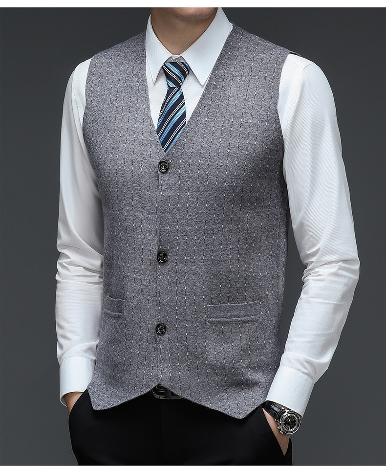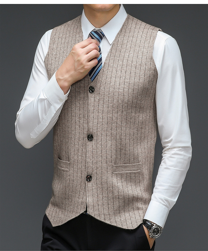 패션 남성 세트 V 넥 조끼 니트 버튼 신랑 베스트 맨 슬림핏 스트라이프 조끼 비즈니스 오피스 세트