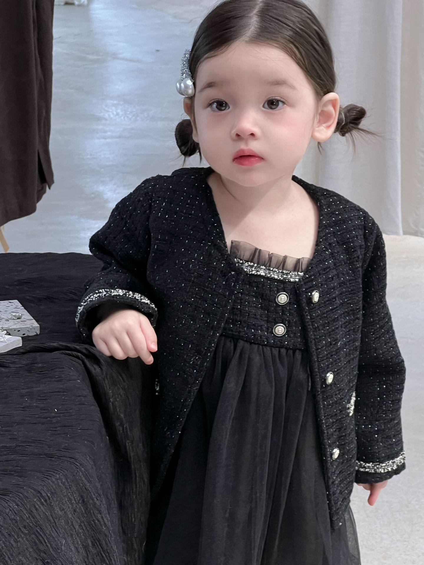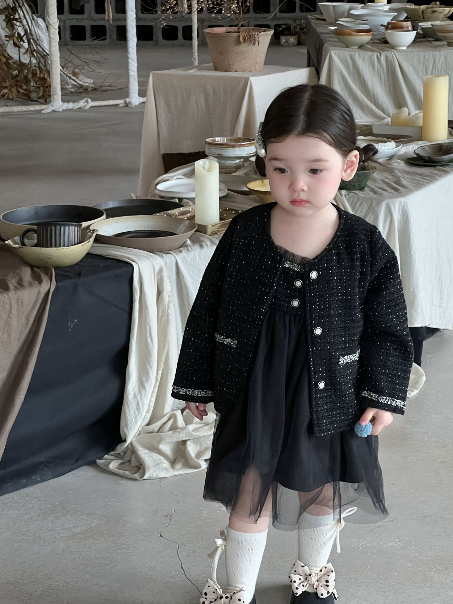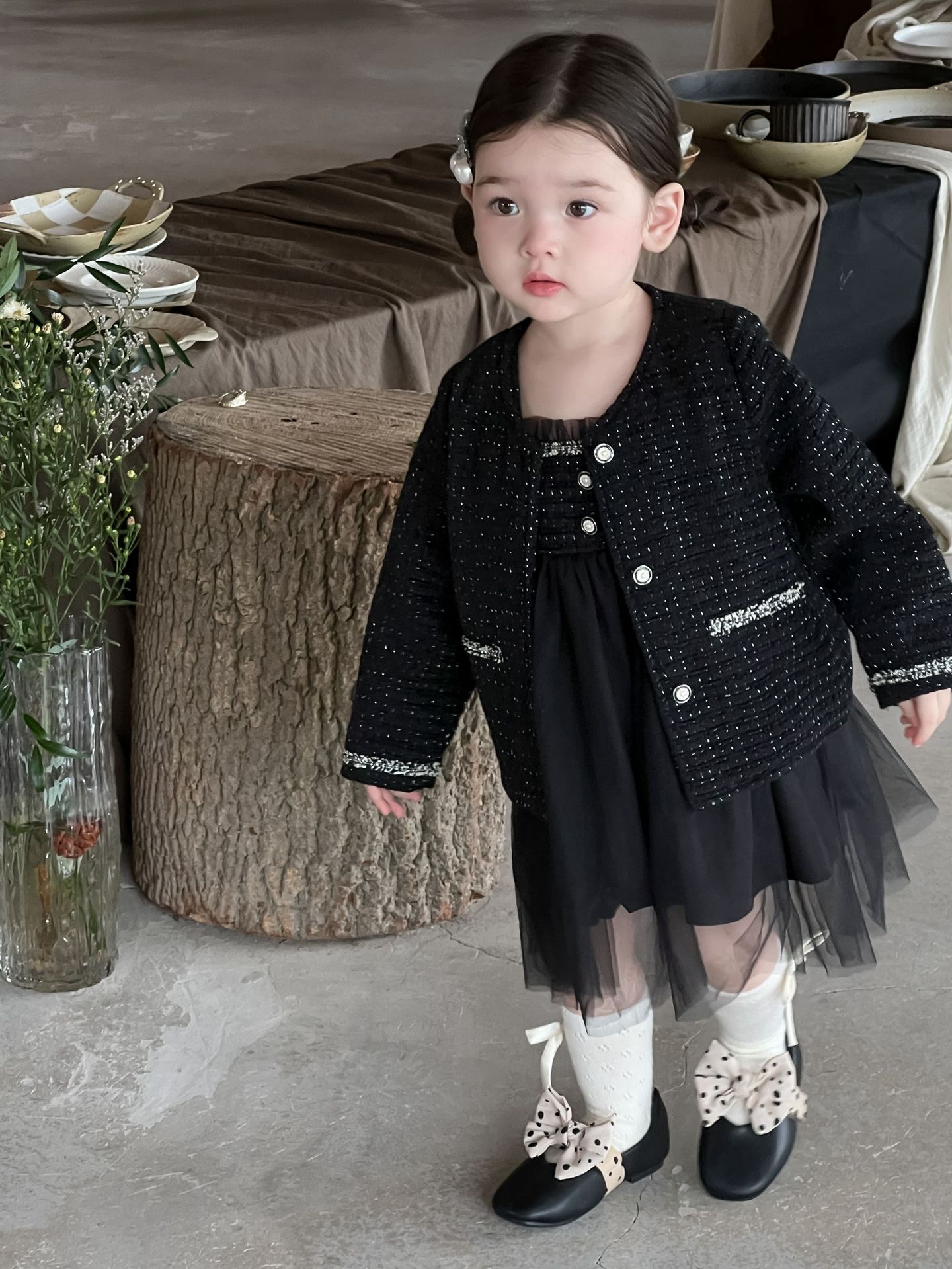 가을 여아용 향수풍 조끼 원피스 투피스 세트 허번 스타일 다용도 외출용 코트 세트스토어 가기