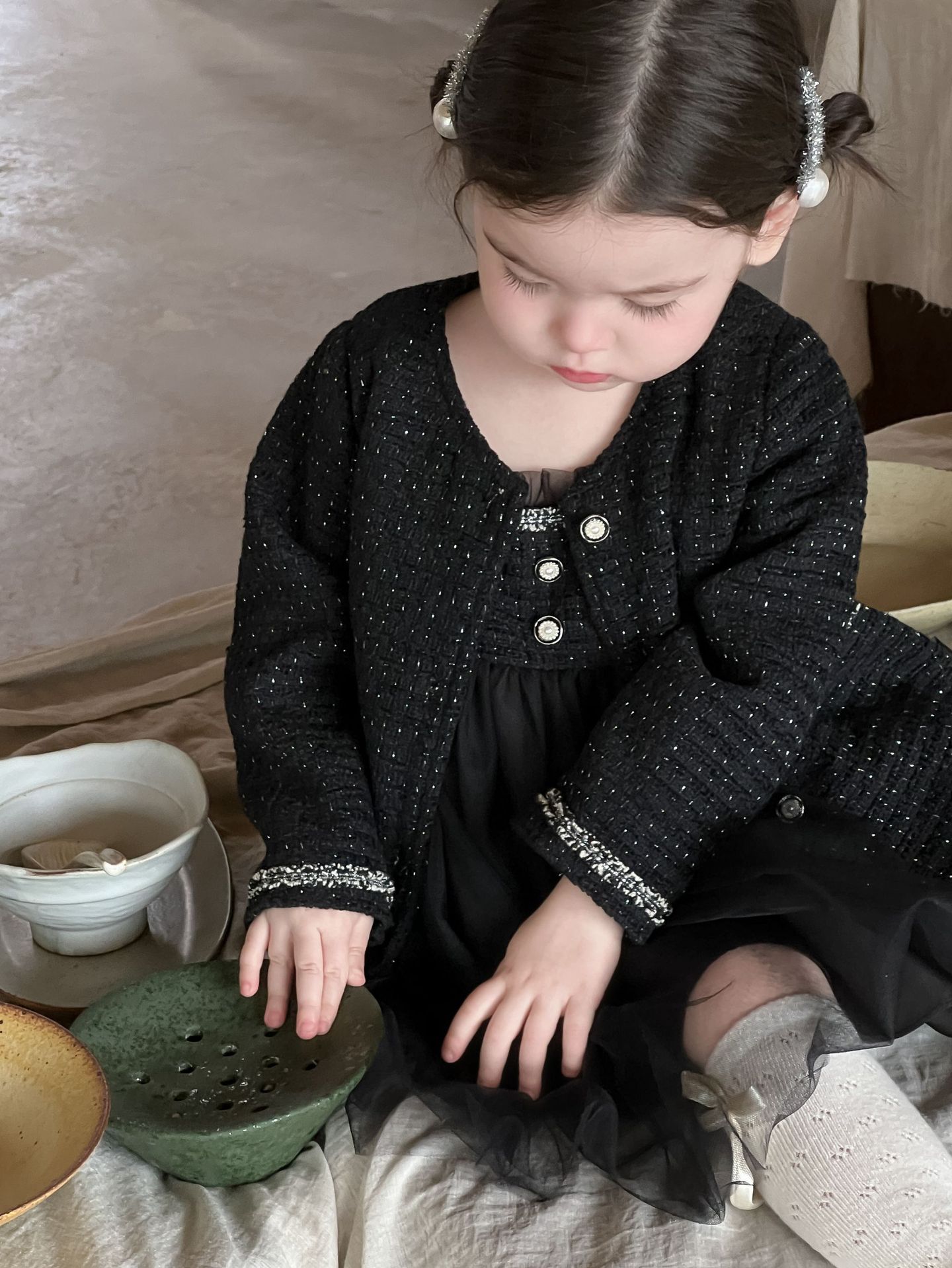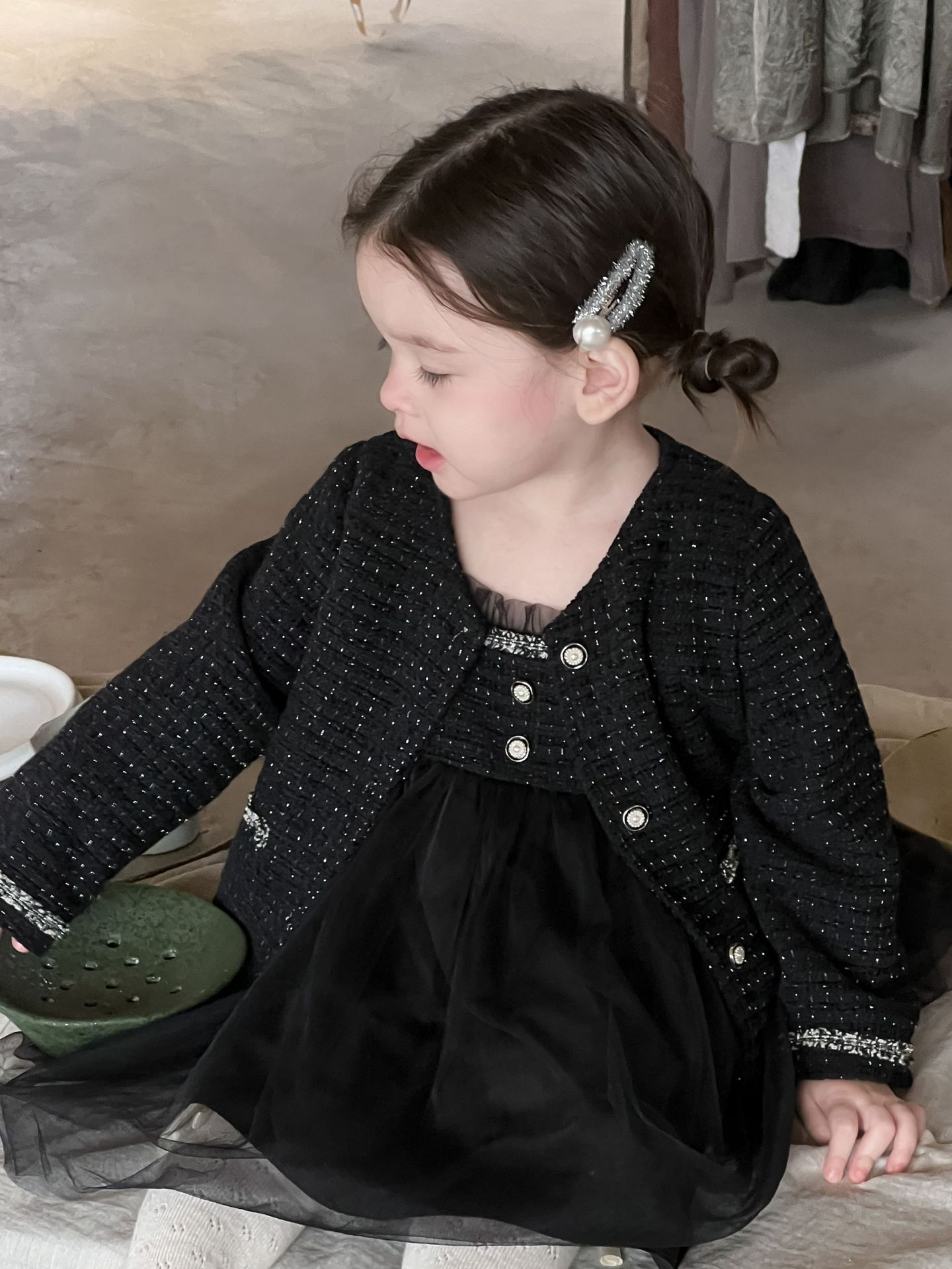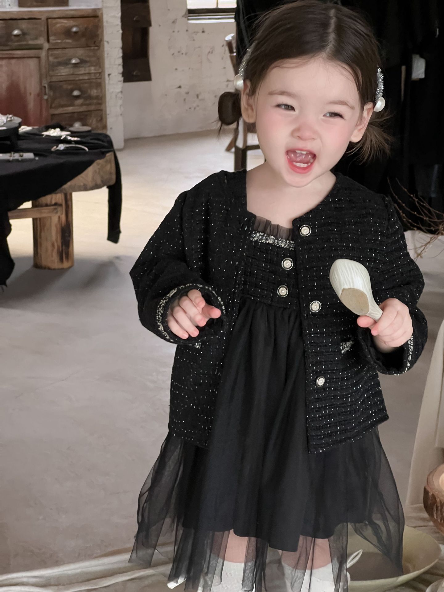 가을 여아용 향수풍 조끼 원피스 투피스 세트 허번 스타일 다용도 외출용 코트 세트스토어 가기