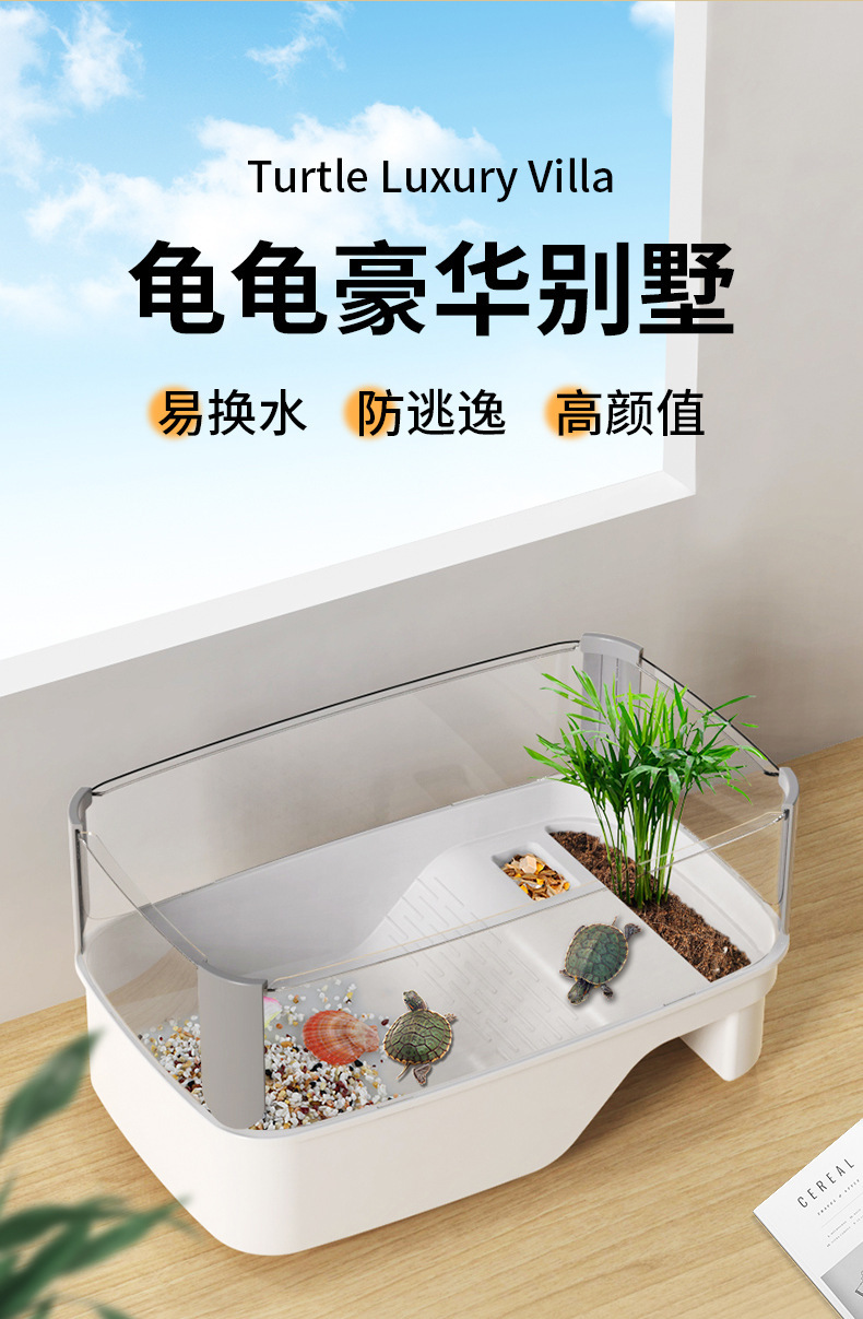 탱크 올리기 위한 바구니 테이블이있는 거북이 탱크 특수 어항 브라질 거북이 상자 집 빌라 거실 작은 가정용 집