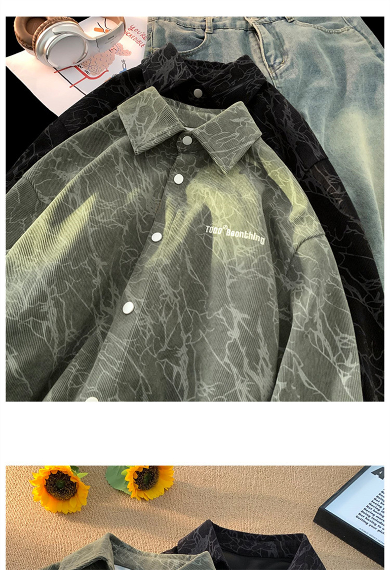 아메리칸 스타일 레트로 코듀로이 셔츠 남성용 트렌디 브랜드 가을 자수 하이 엔드 센스 코피 핸섬 셔츠 홍콩 스타일 일본 재킷스토어 가기