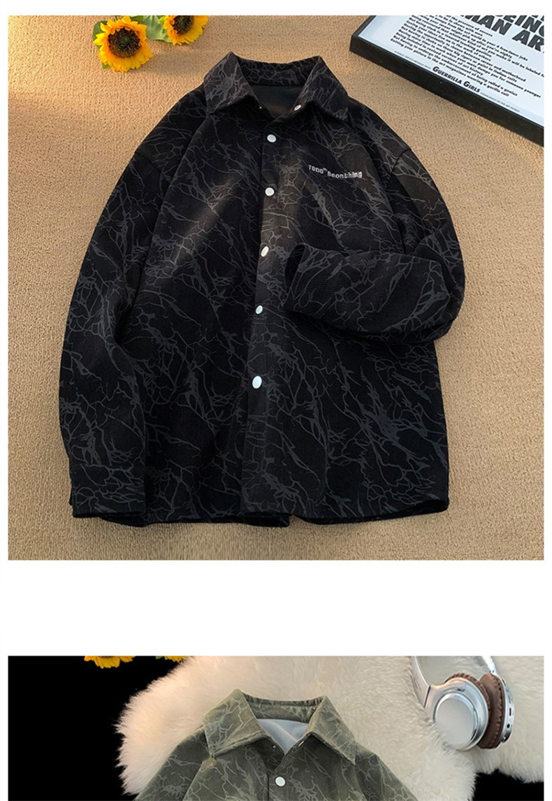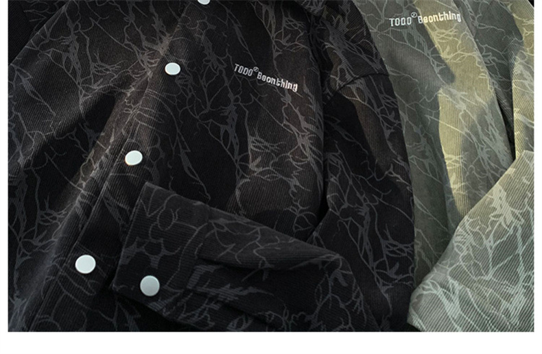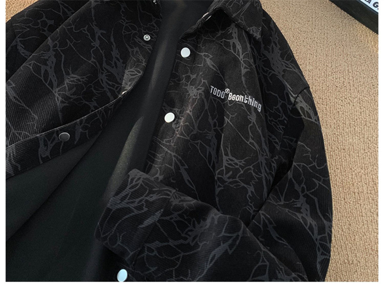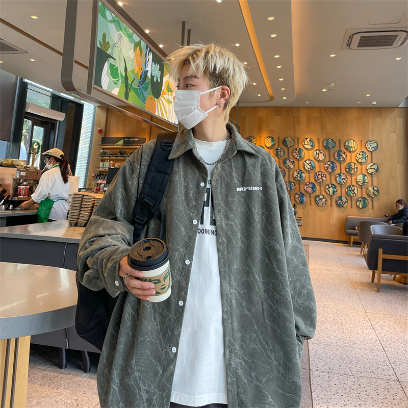 아메리칸 스타일 레트로 코듀로이 셔츠 남성용 트렌디 브랜드 가을 자수 하이 엔드 센스 코피 핸섬 셔츠 홍콩 스타일 일본 재킷