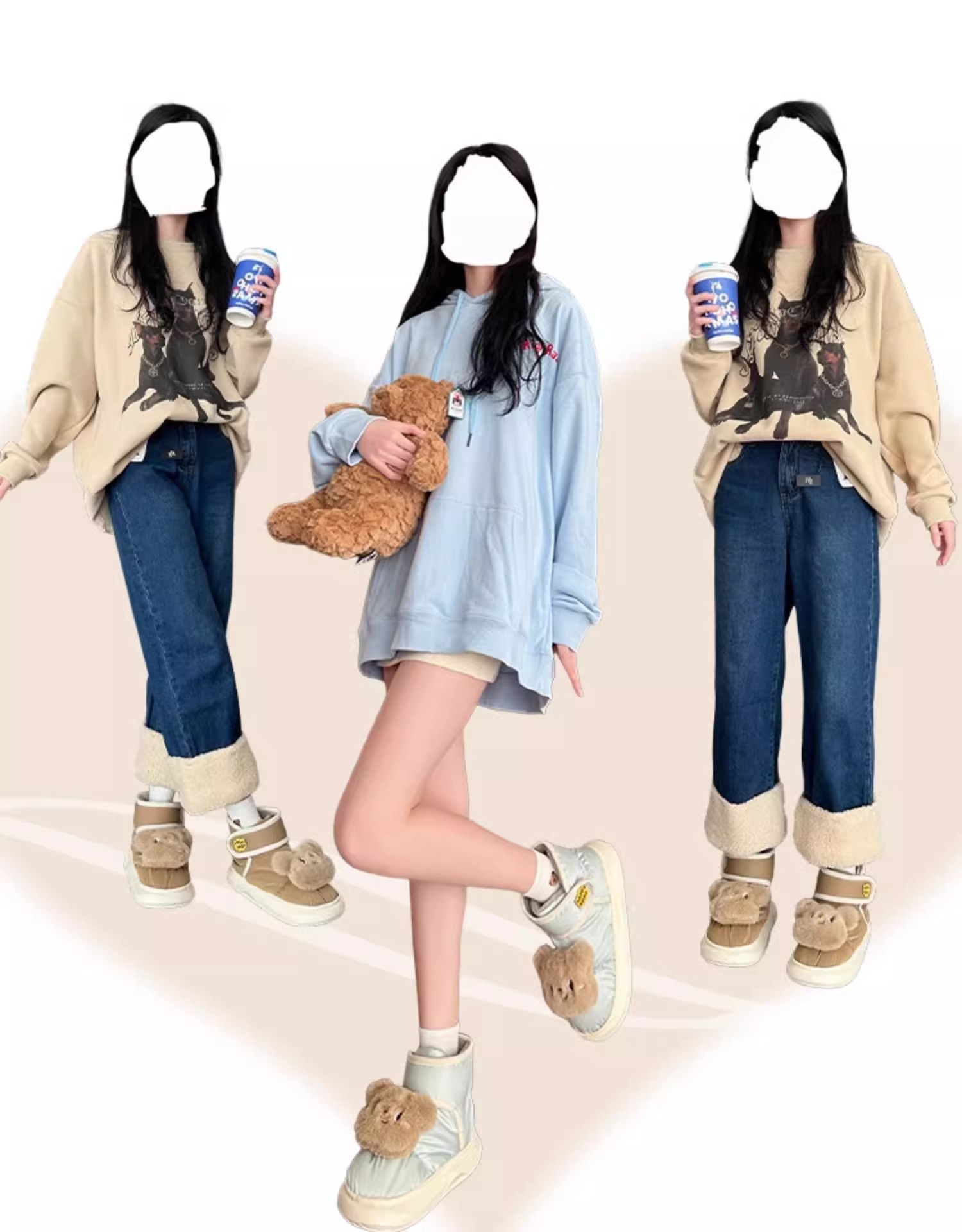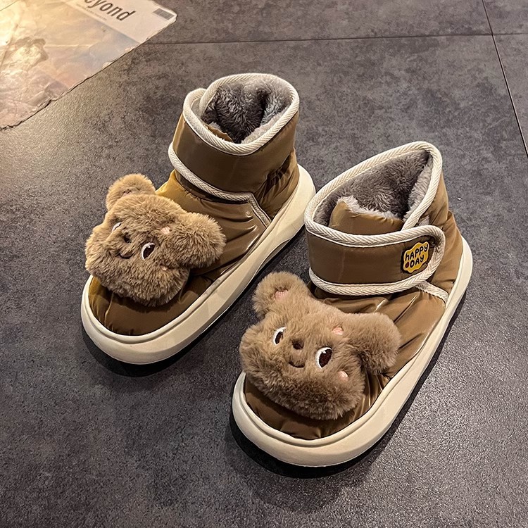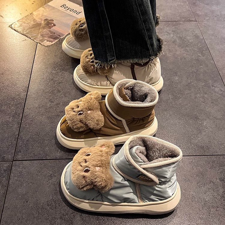 패션 만화 캐주얼 짧은 튜브 스노우 부츠 여성 2024 가을과 겨울 새로운면 신발 두꺼운 바닥 기모 따뜻한 빵 신발스토어 가기