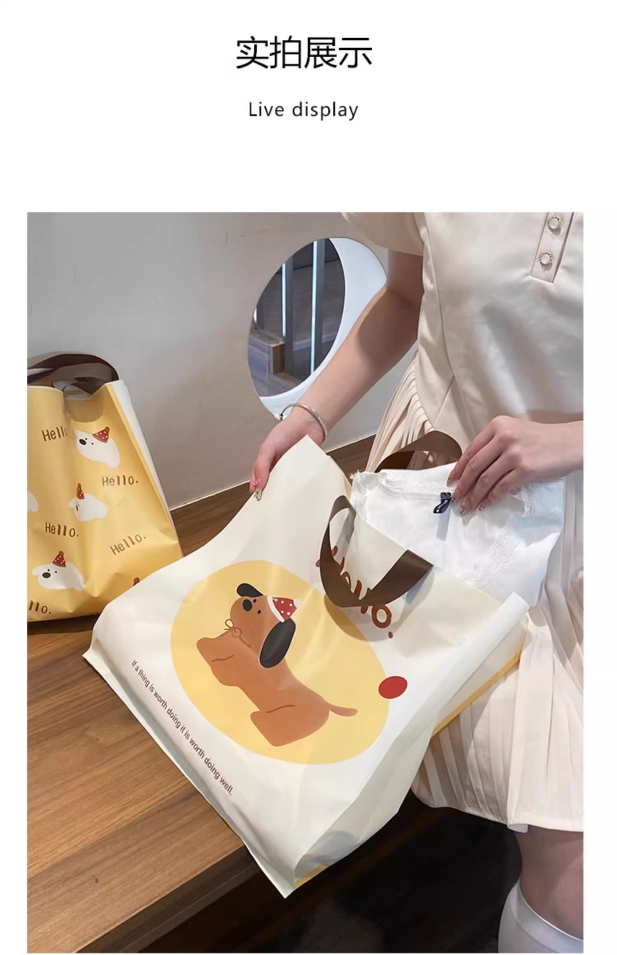 새로운 고급 만화 아동 의류 의류 매장 핸드백 젖빛 포장 의류 비닐 봉투 재고 있음 도매스토어 가기