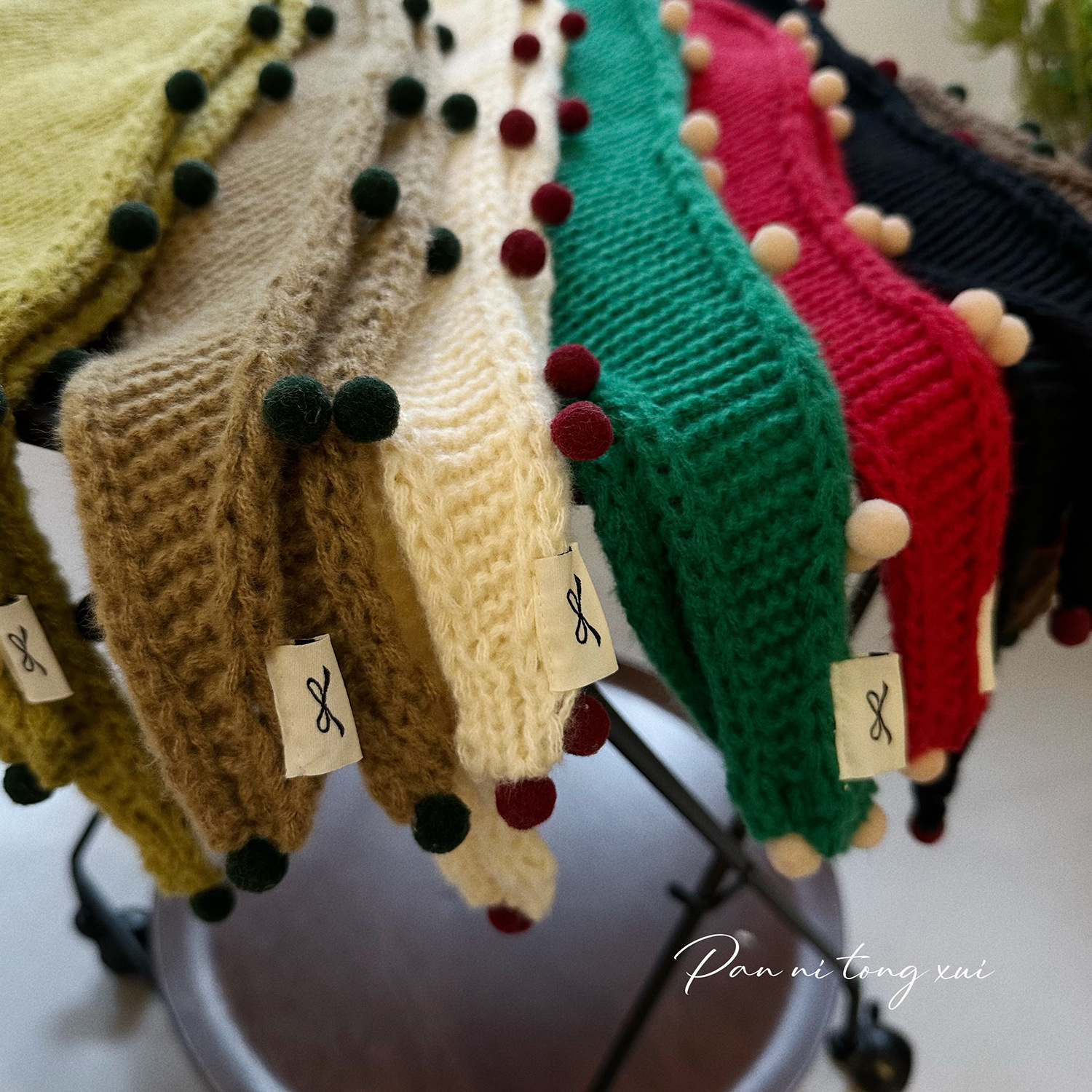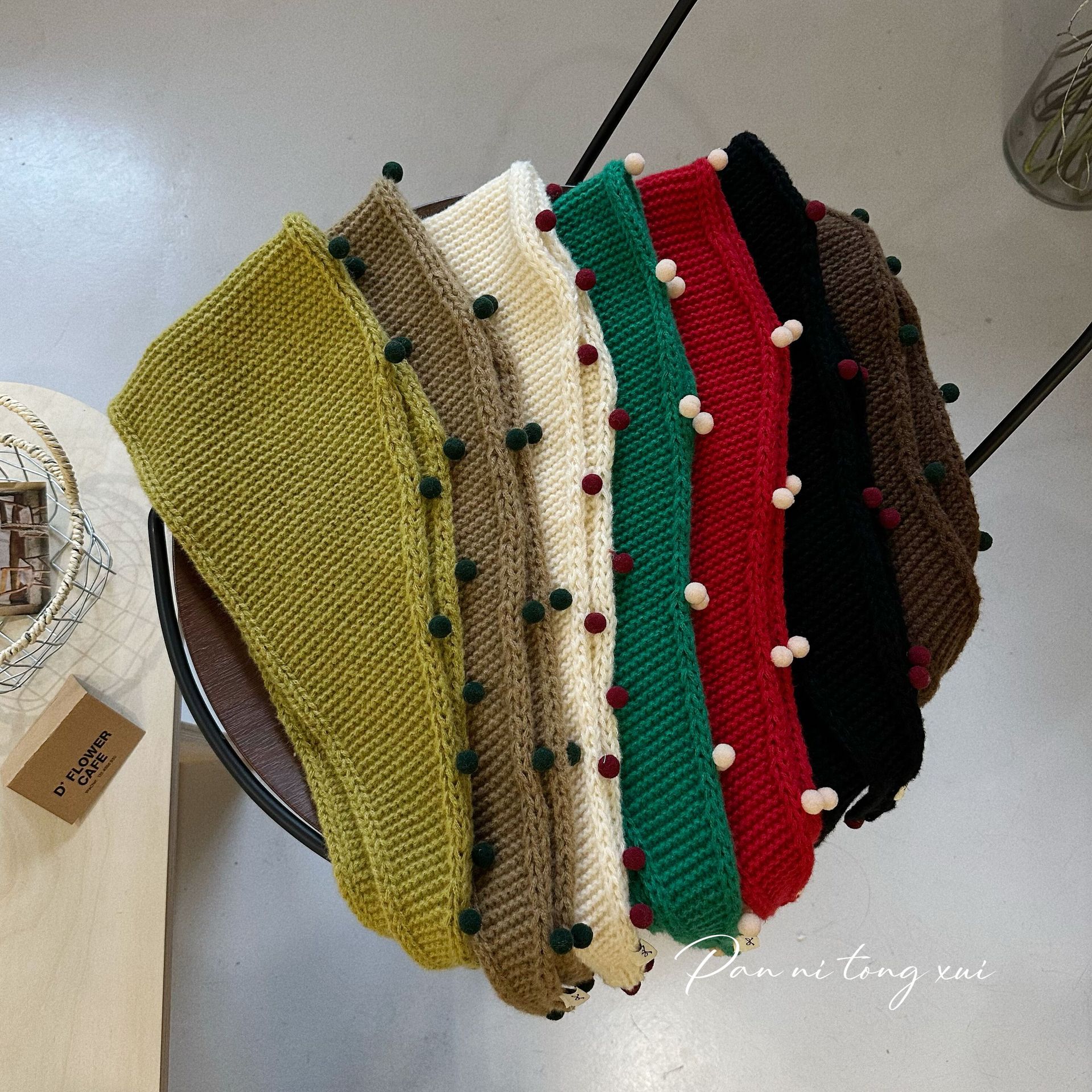 원래 컬러 볼 니트 삼각형 어린이 스카프 가을과 겨울 소녀 단색 스카프 아기 두꺼운 따뜻한 학생 스카프스토어 가기