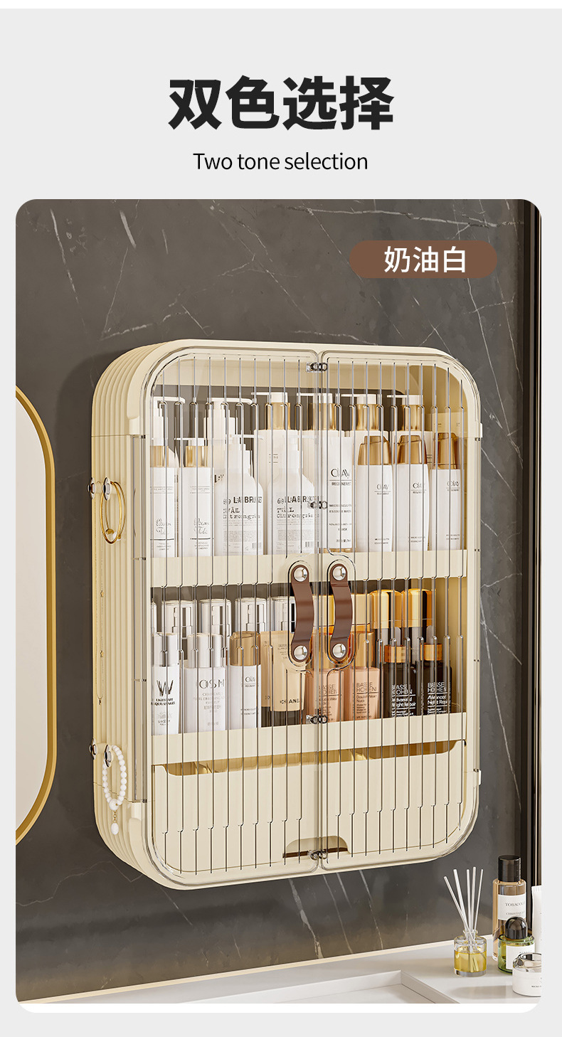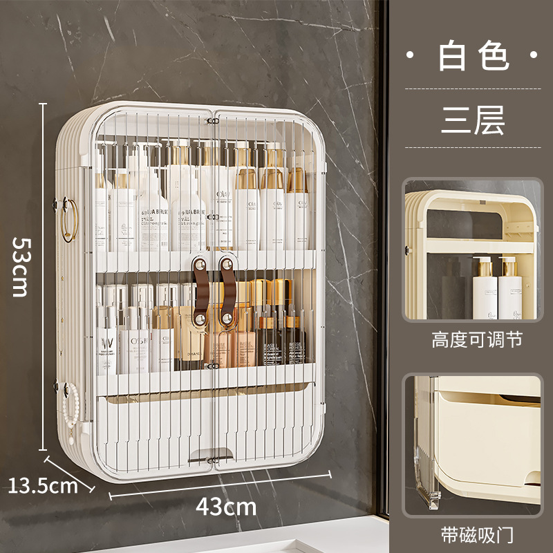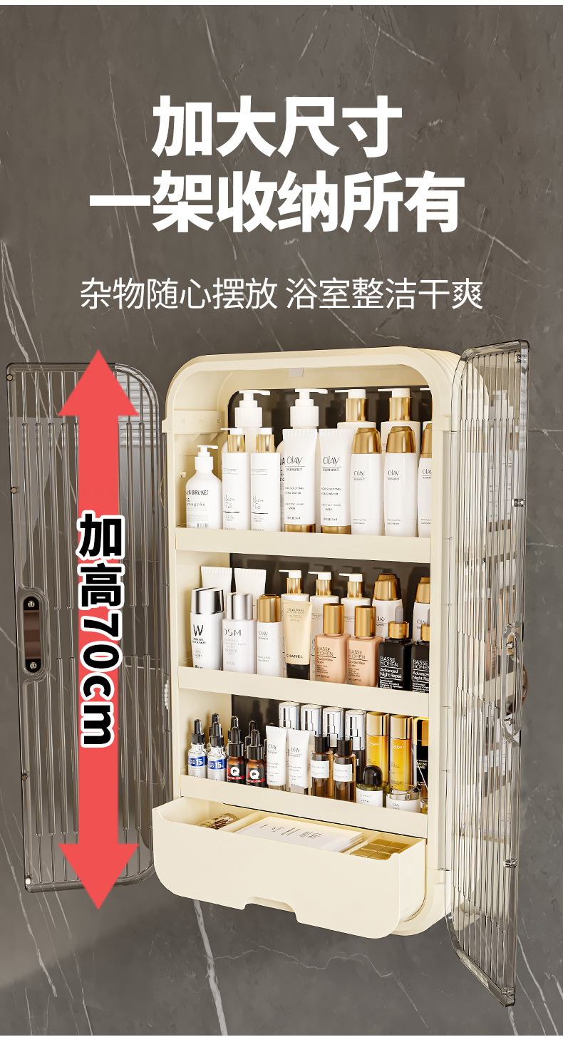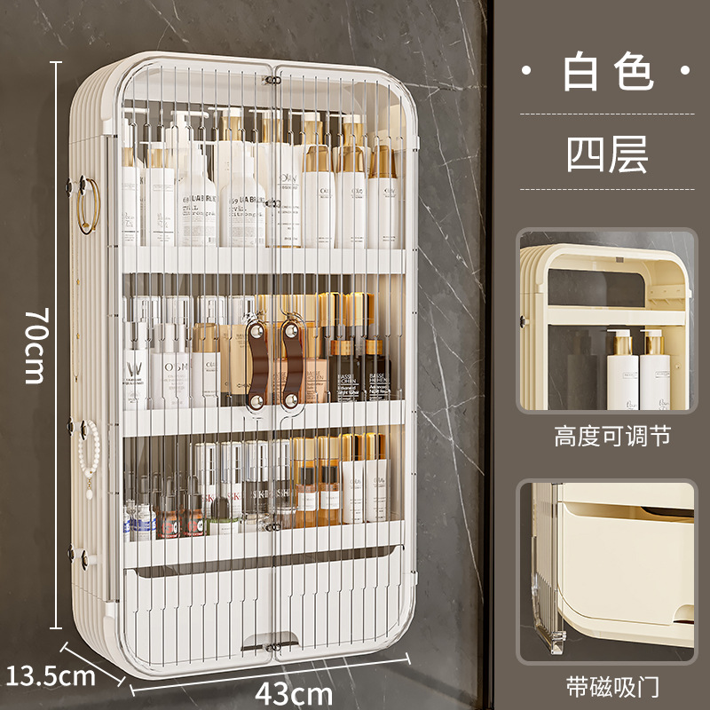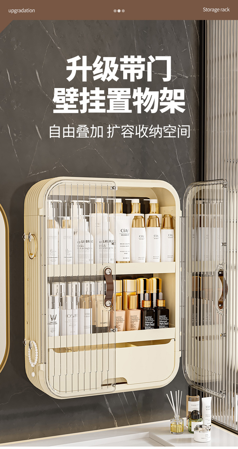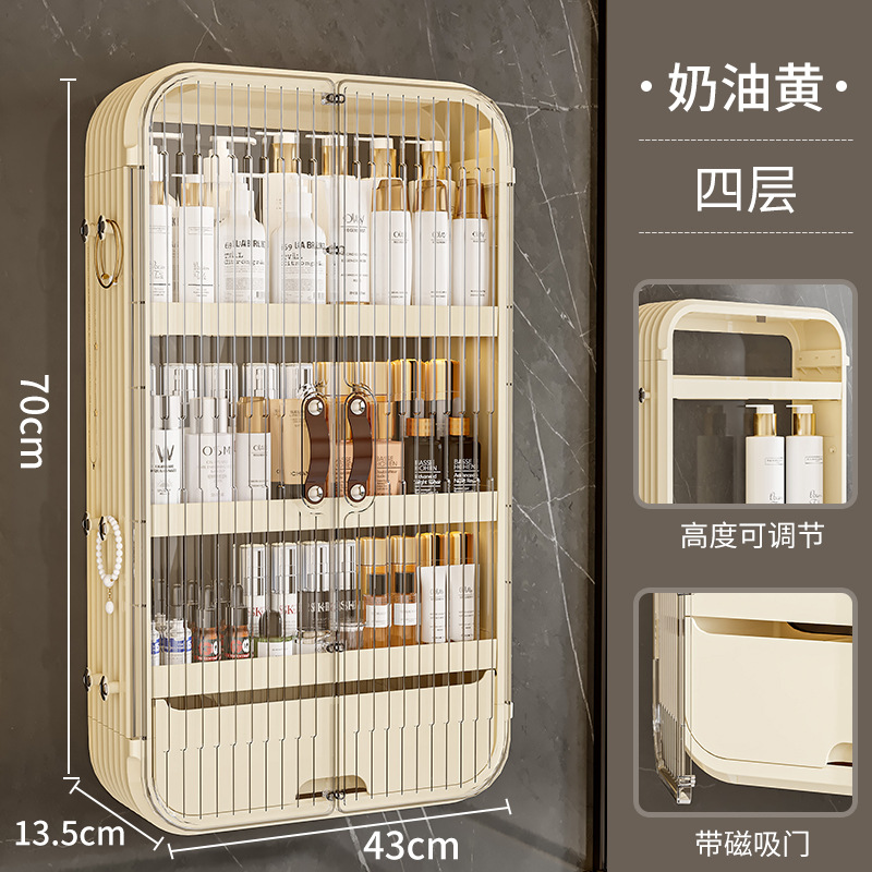 도어가있는 펀치없는 벽걸이 형 욕실 랙 다층 화장품 욕실 보관 랙 다기능 보관 랙