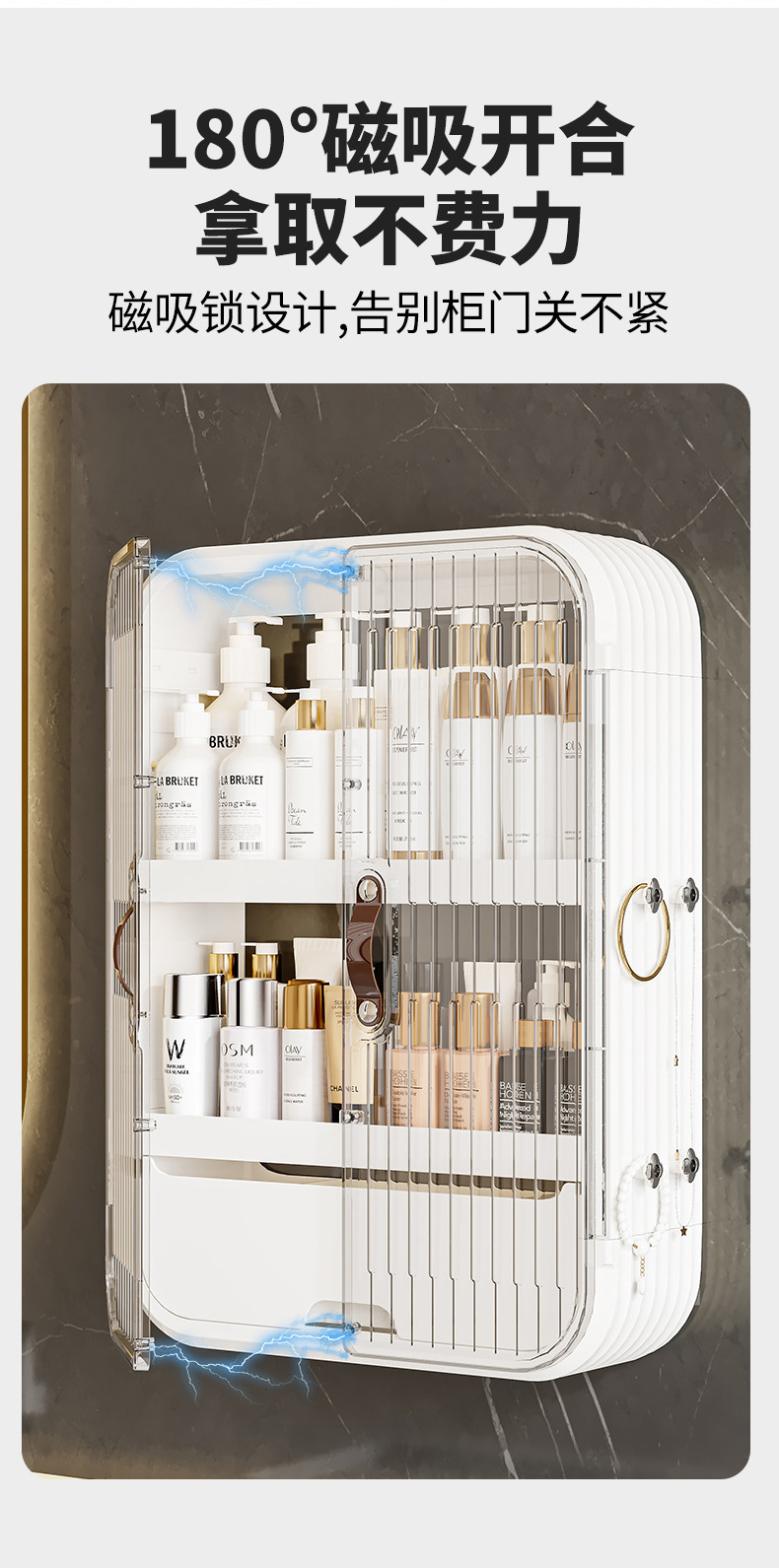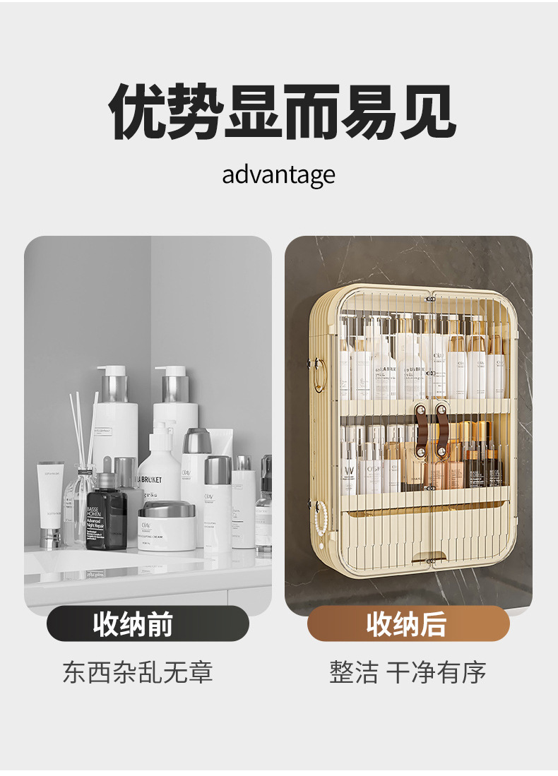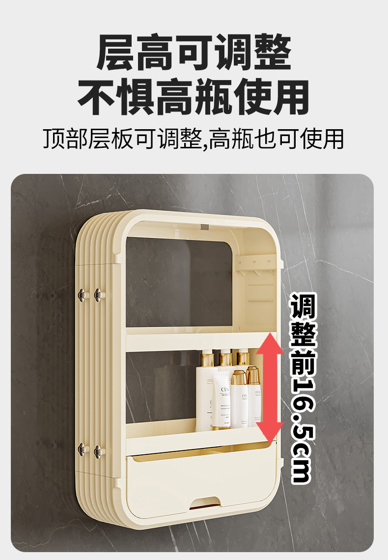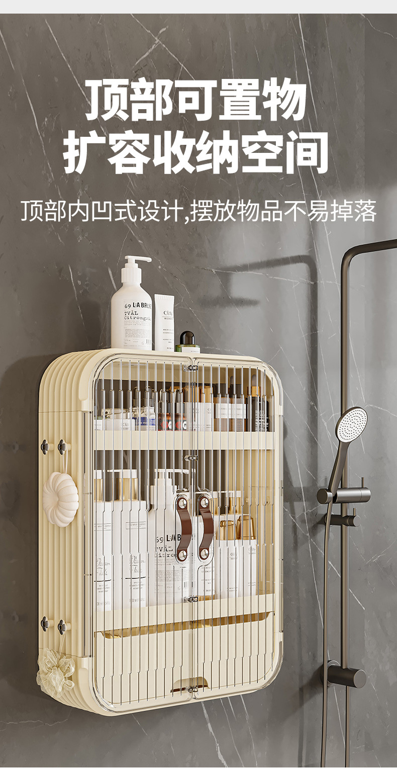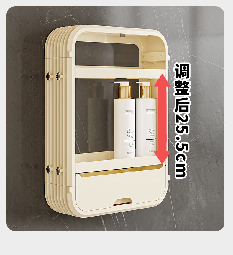 도어가있는 펀치없는 벽걸이 형 욕실 랙 다층 화장품 욕실 보관 랙 다기능 보관 랙