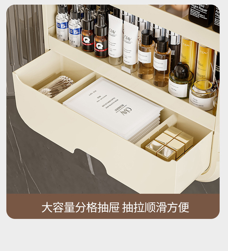 도어가있는 펀치없는 벽걸이 형 욕실 랙 다층 화장품 욕실 보관 랙 다기능 보관 랙스토어 가기