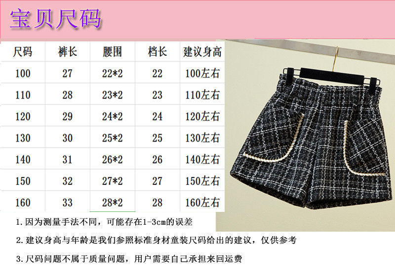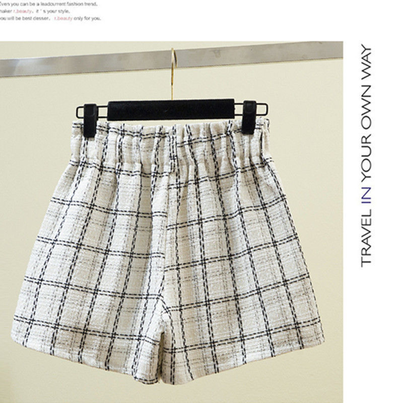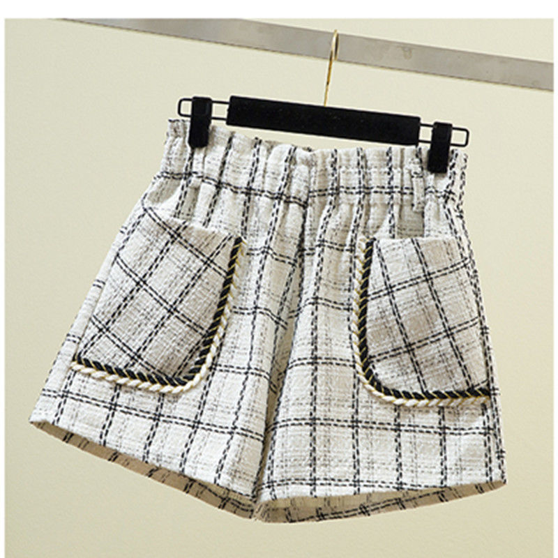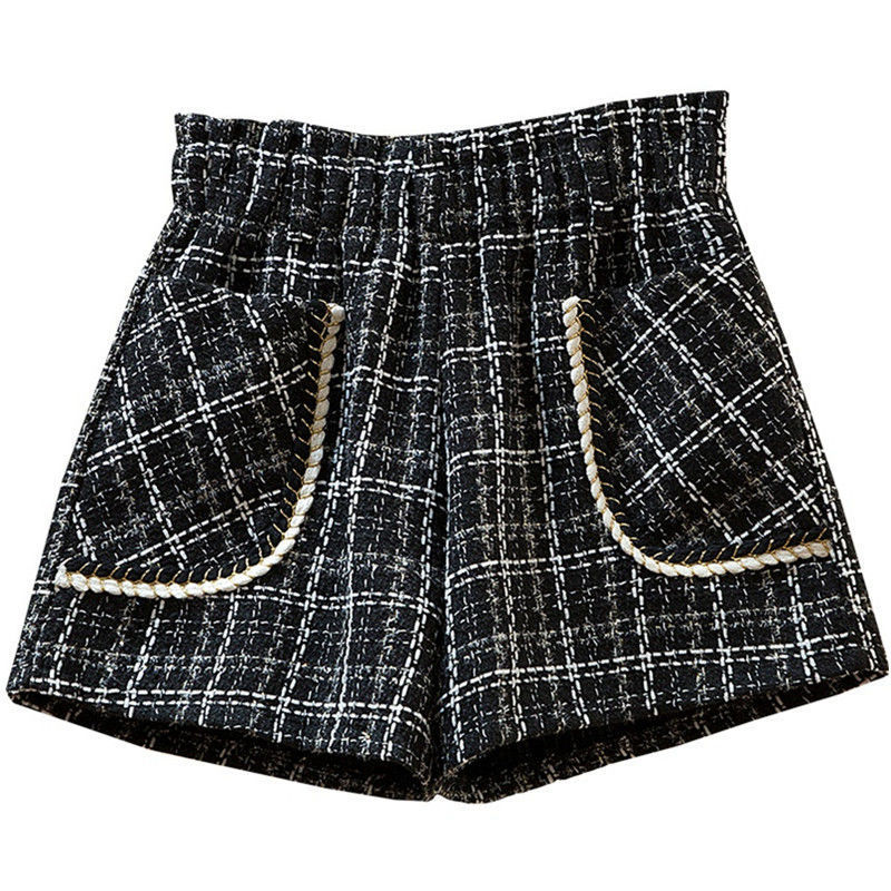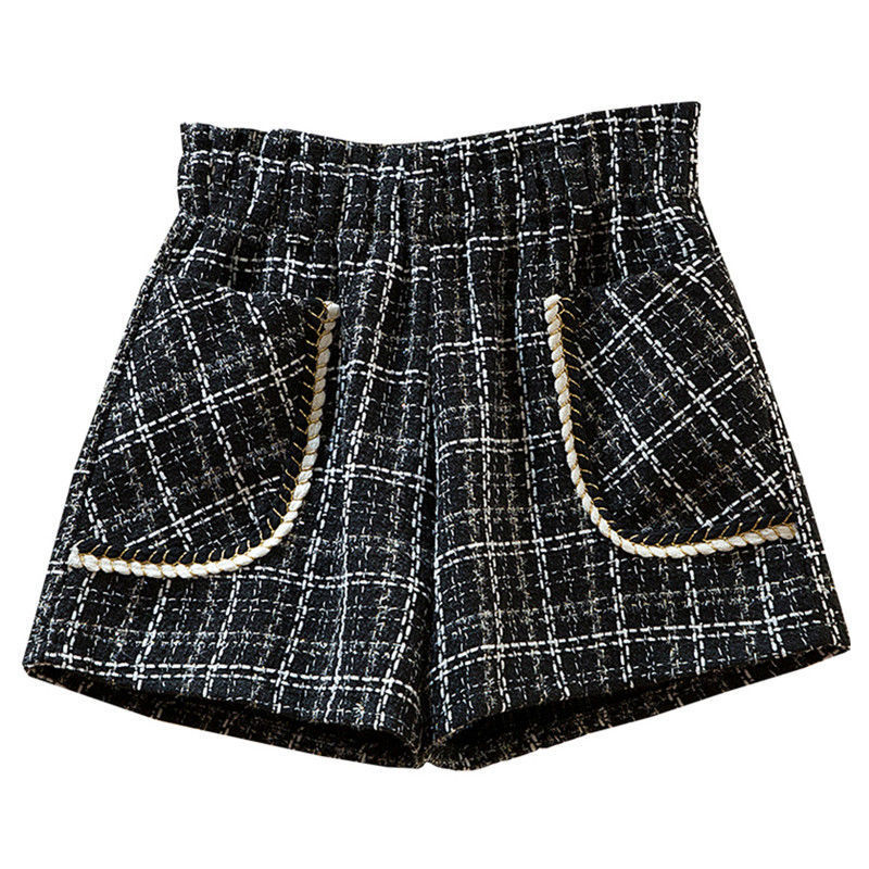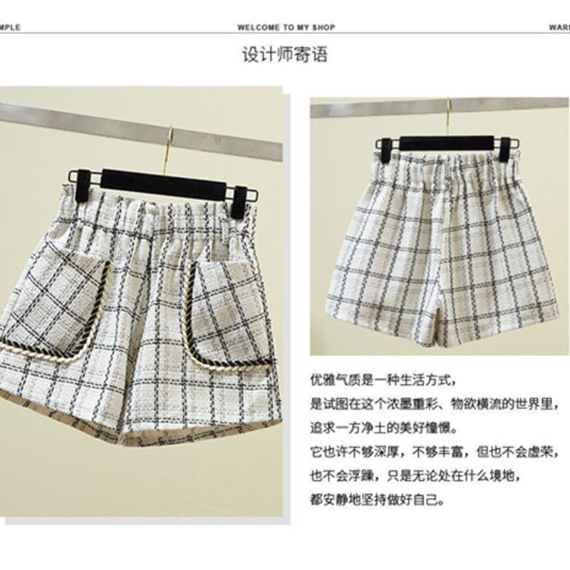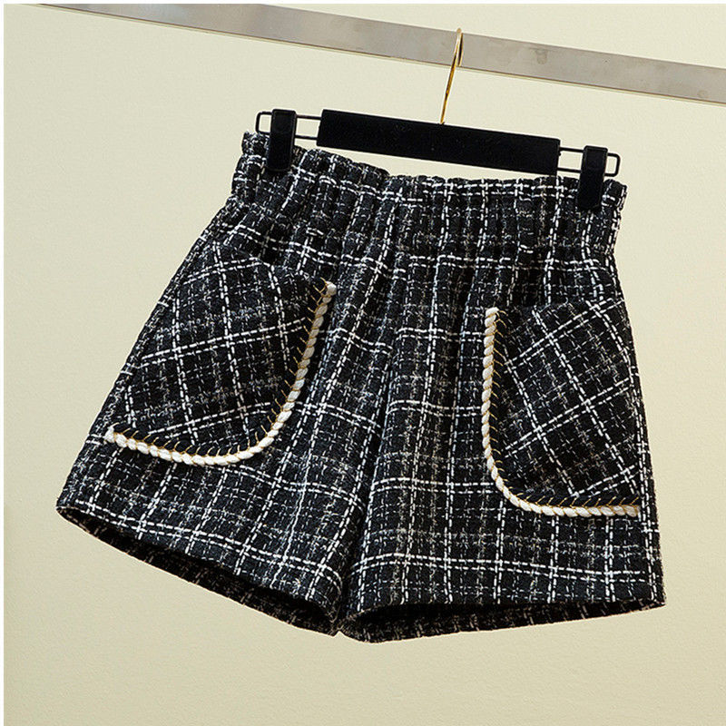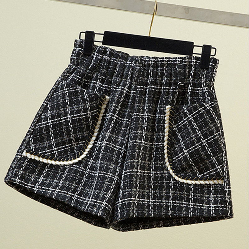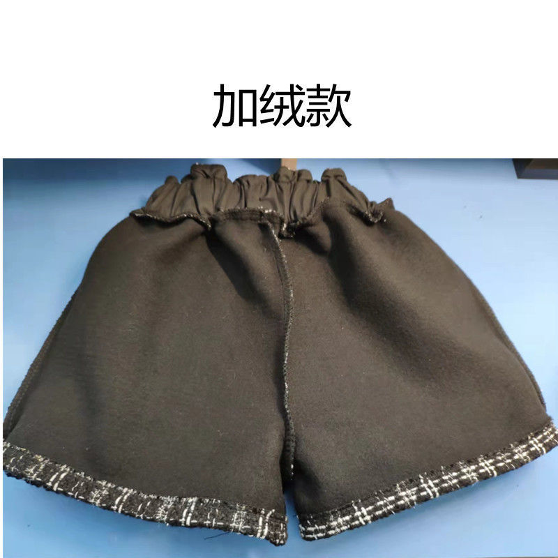 화이트 걸의 샤넬 스타일 모직 반바지 가을과 겨울 한국식 올매치 아웃웨어 바지 캐주얼 하이 허리 와이드 레그 트렌디 팬츠