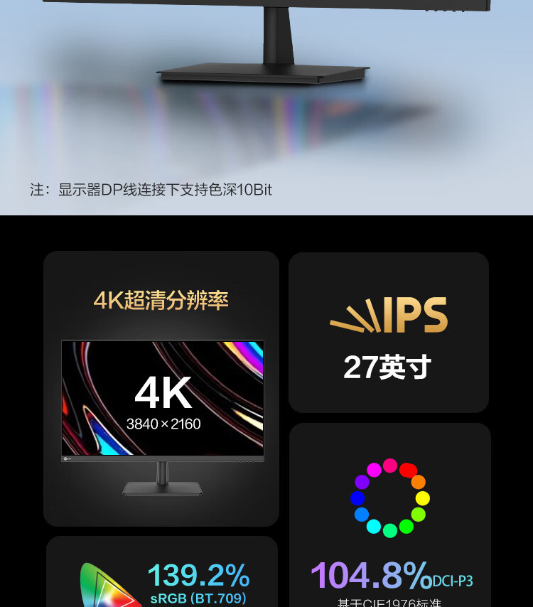 Lenovo lenovo Laiku M2721U 27inch 울트라 클리어 4K 좁은 프레임 IPS 스크린 10Bit HDR 벽걸이