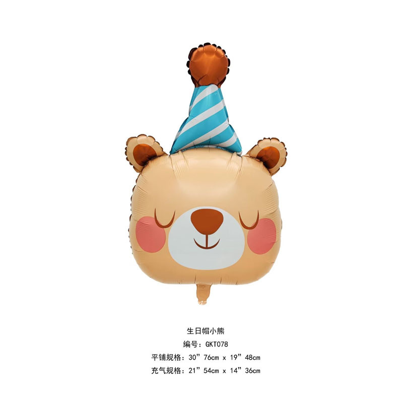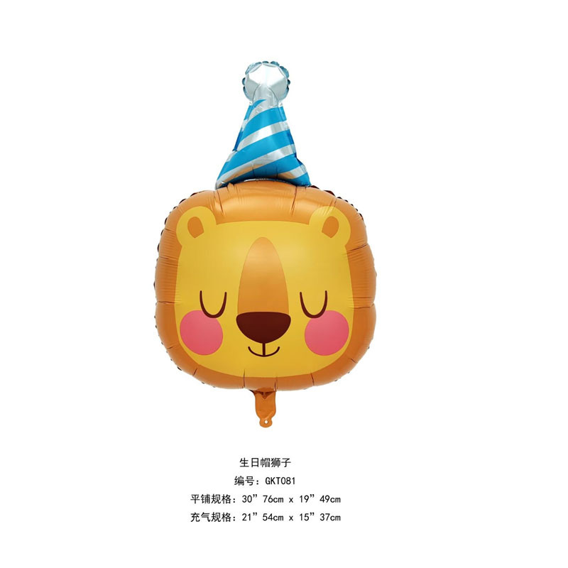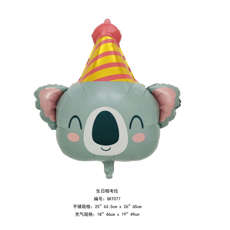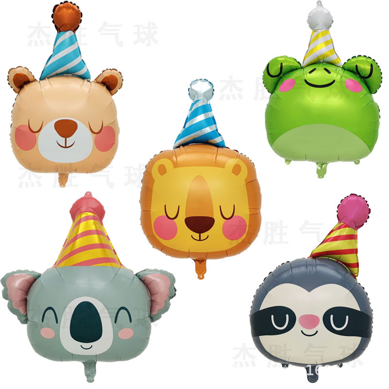 새로운 생일 모자 사자 코알라 곰 기린 만화 모양 알루미늄 필름 풍선 어린이 생일 파티 장식