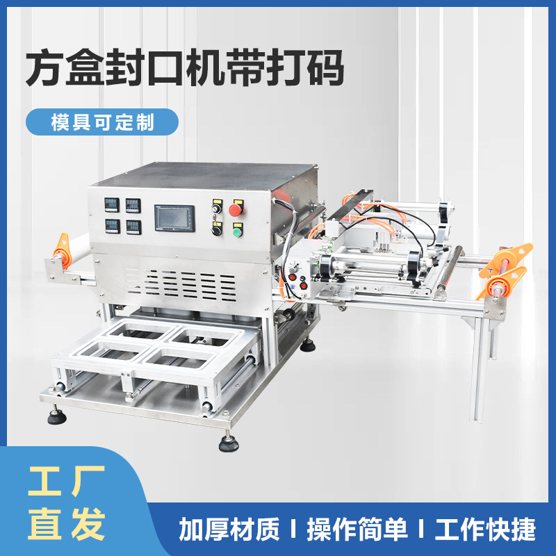 맞춤형 사각형 상자 씰링 기계 플라스틱 필름 씰링 라벨 테이크 아웃 알루미늄 도시락 상자 패스트 푸드 상자 씰링 기계 필름 씰링 기계스토어 가기