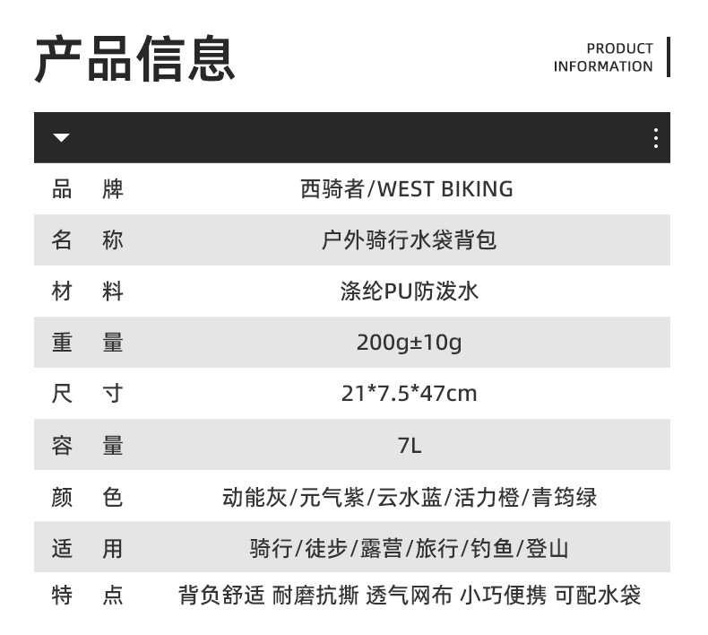 웨스트 라이더 자전거 배낭 배낭 야외 워터 백 자전거 자전거 여행 등산 휴대용 배낭