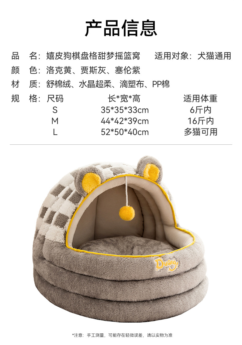 중소형 사육장 개 침대 가을과 겨울 두꺼운 따뜻한 체스 판 달콤한 꿈 요람 둥지 고양이 개 집 애완 동물 둥지